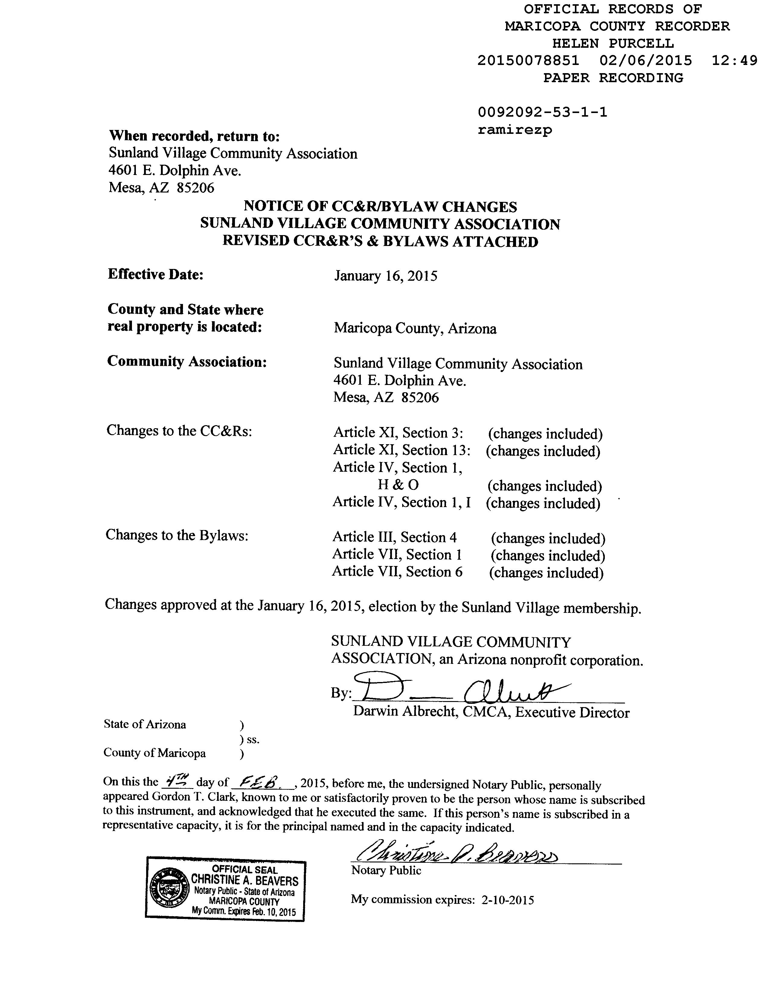 MARICOPA, AZ Document:RES AMD 2015.78851 Page:6 of 53 Printed on:8/11/2022 4:55 PM Branch :FC0 User :JSTI