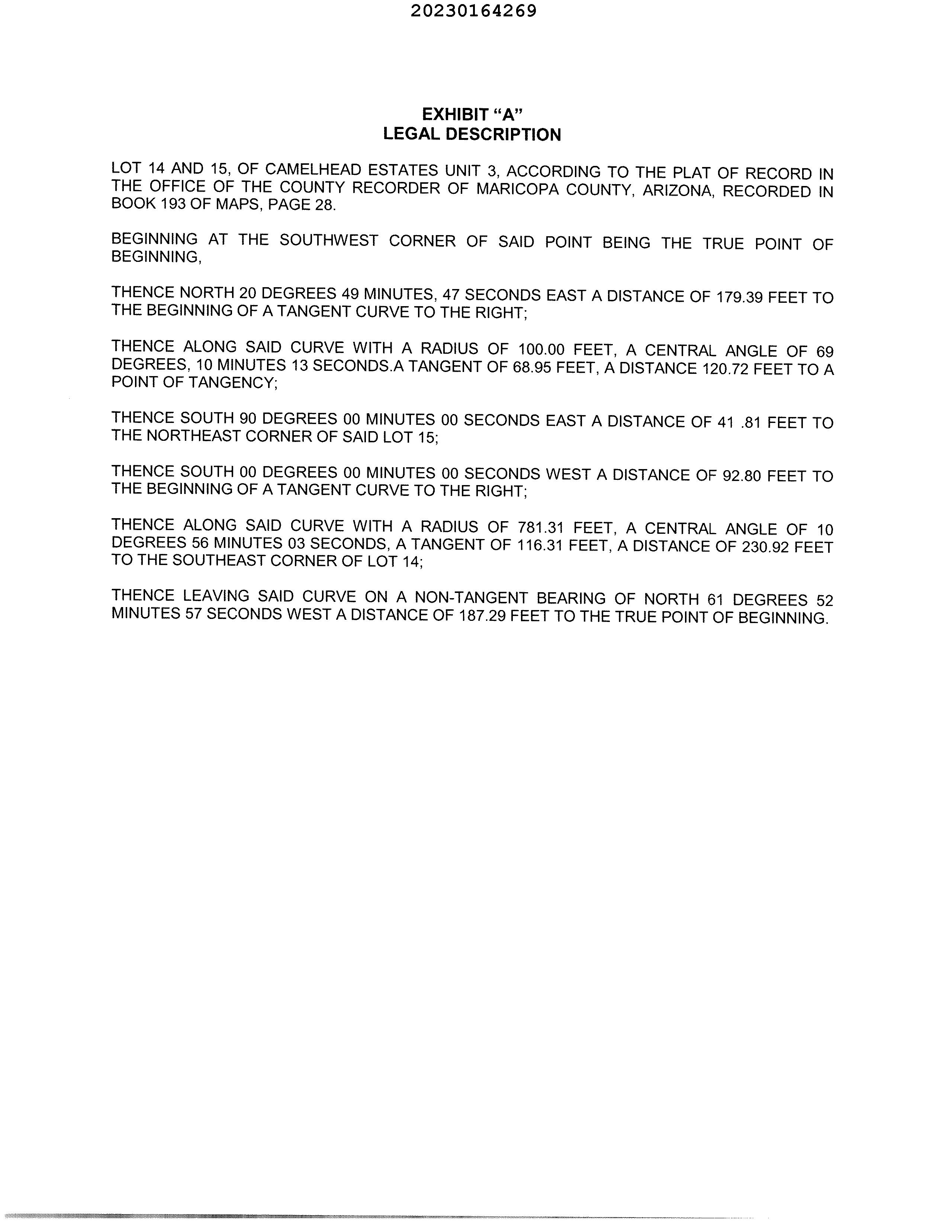 Legal Description : Lot 14 Camelhead Estates Unit 3 Per Mcr 193-28 Lots 14 & 15