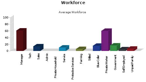 Workforce Occupation: Manager/Prof: 60.64% Private Worker: