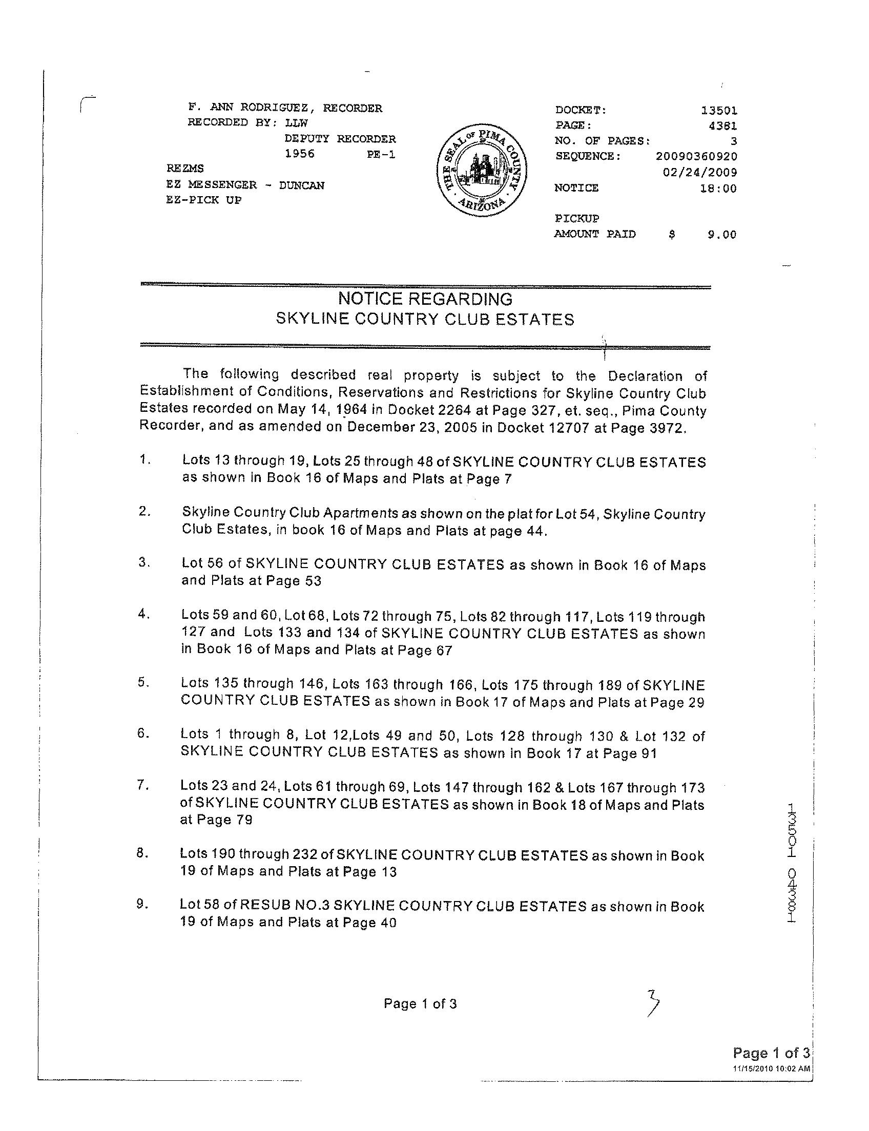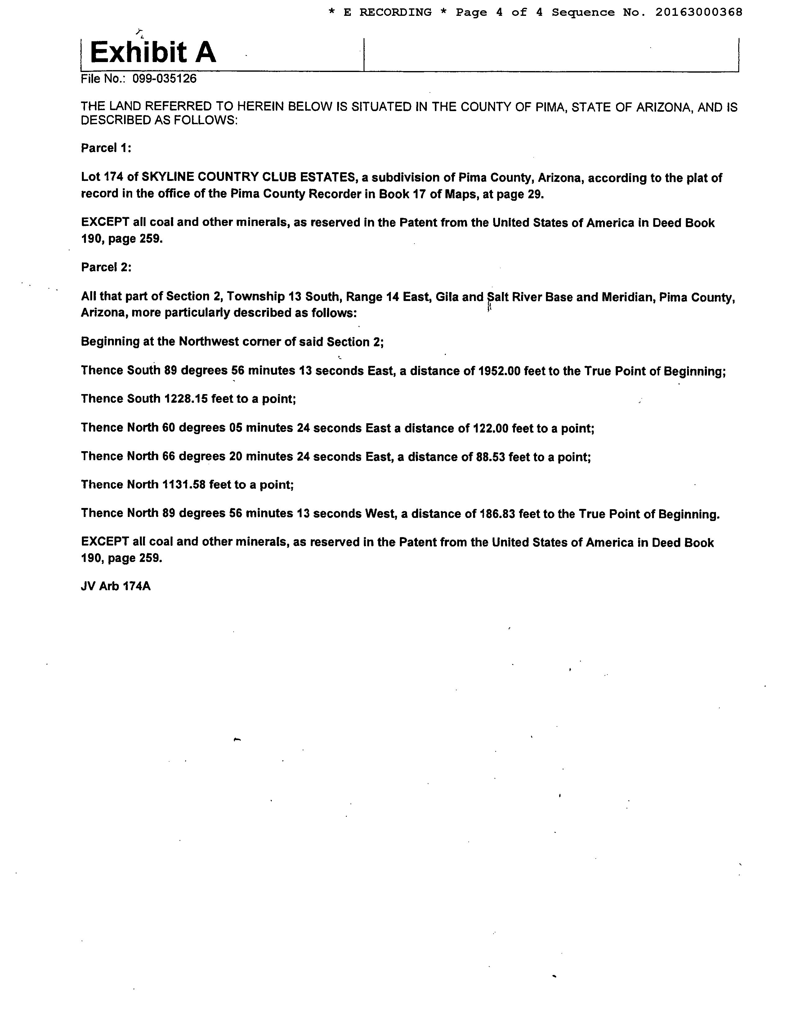 Legal Description : Skyline Country Club Estates Lot 174 & Irr Ptn Lot 3 Sec 2-13-14
