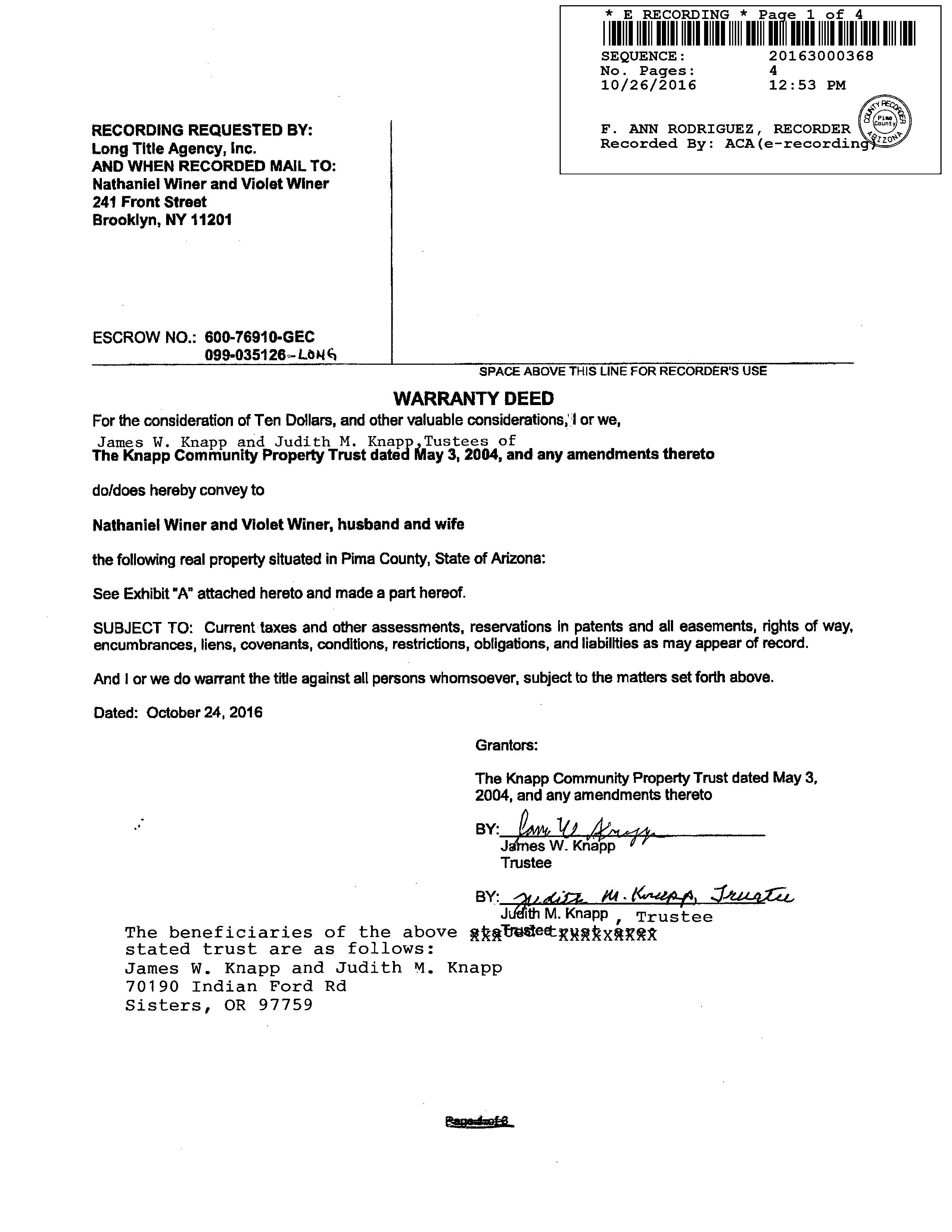 APN / Alternate APN: 109-03-153A / Deed Type: Warranty Deed