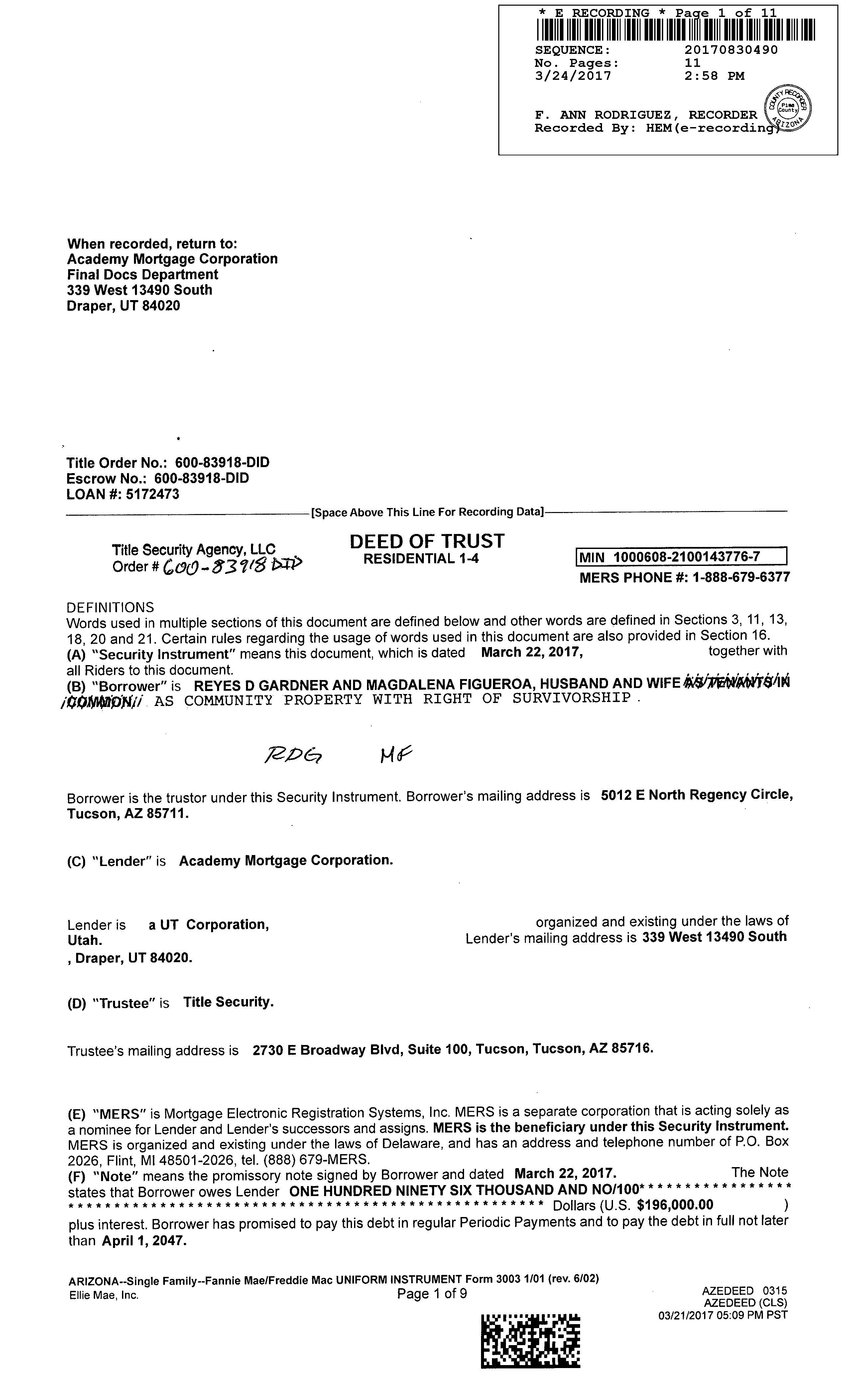 Township-Range- Sect : 14S-14E-11 Map Reference : 11-14S-14E Book/Page : 31-42 School District : Tucson Unified Legal Lot : 39 Munic/Township : Tucson Unified Market Area : 70 Market Date : 03/24/2017 / 03/22/2017 1st Mtg Document # : 830490 Sale Price : $215,000 1st Mtg Term : 30 Document # : 830489 Price Per SqFt : $100.66 Type : Warranty Deed 2nd Mtg Amount/Type : $20,000 / Conv Mtg Amount/Type : $196,000 / Cnv Title Company : Title Security Inc Lender : Academy Mtg Corp Name : Chait Jaime I Sale Rec/Sale Date : / 02/00/1982 Prior Doc Number : 6713-260 Sale Price : $150,000 Prior Deed Type : Deed (reg) Name : Lisa Mrazek