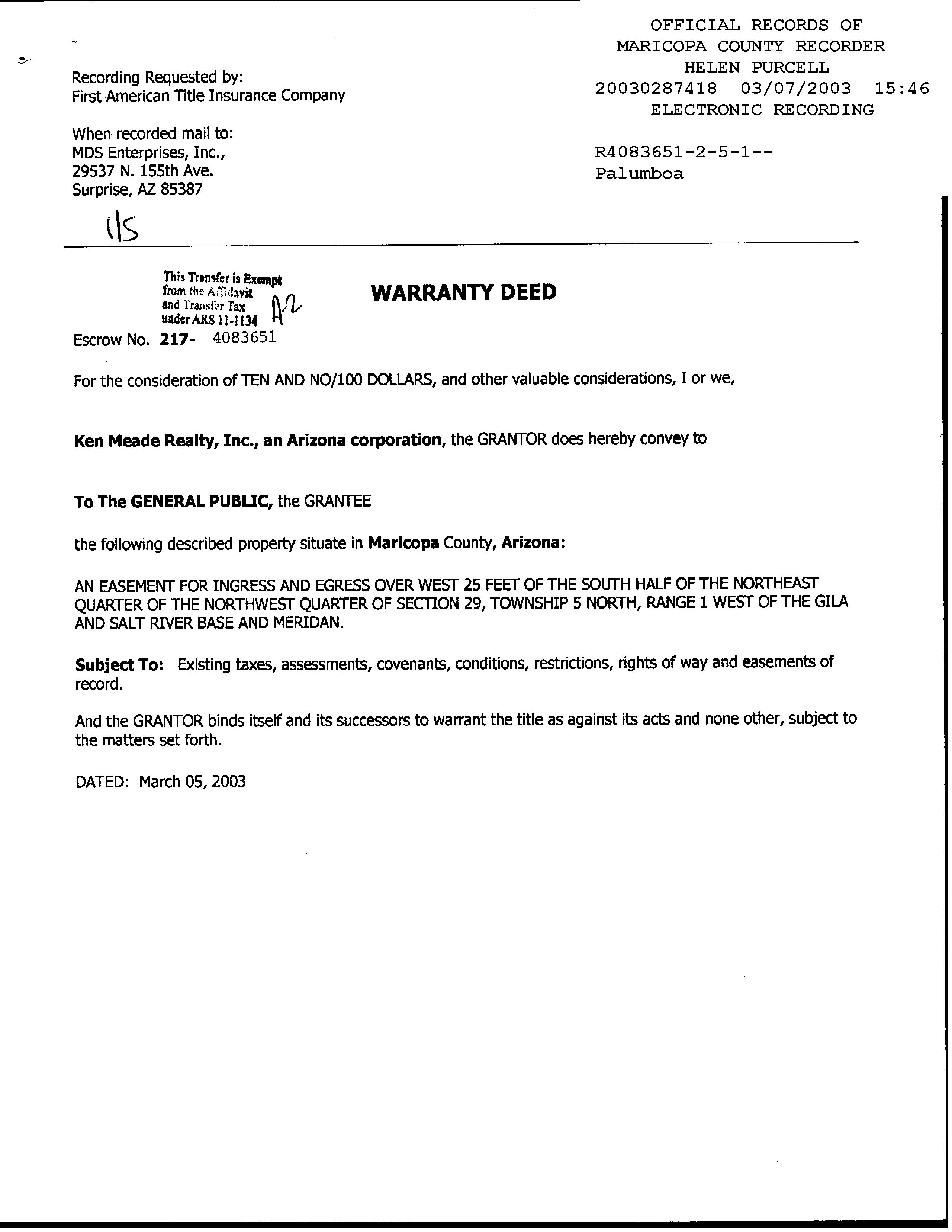 This information is furnished without fee and without benefit of a complete title search. No liability is assumed by First American Title or Title Security. If it is desired that liability be assumed, you may apply for a policy of title insurance with First American Title Insurance Company.