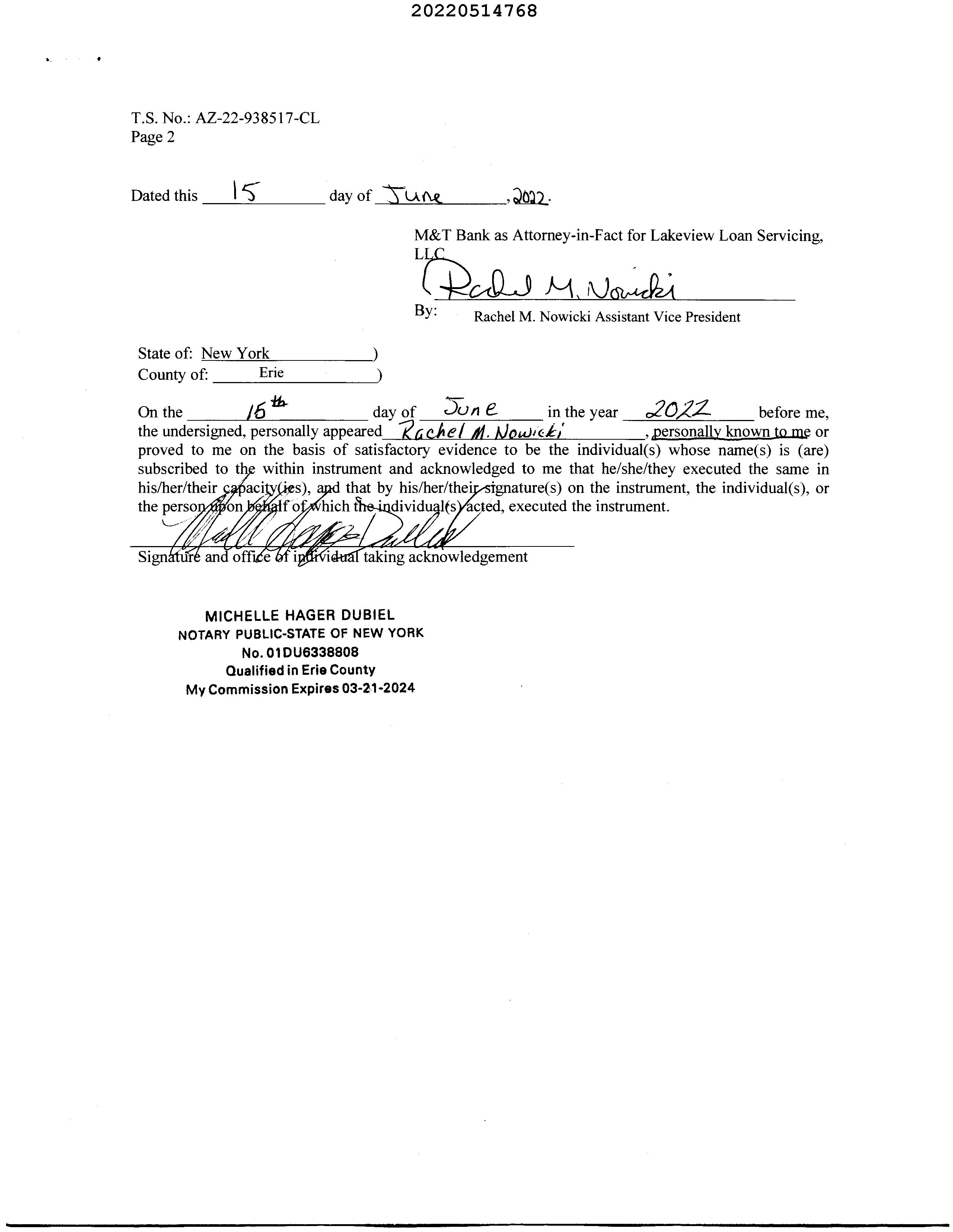 MARICOPA, AZ Document:STR 2022.514768 Page:2 of 2 Printed on:8/12/2022 4:32 PM Branch :FC0 User :JSTI
