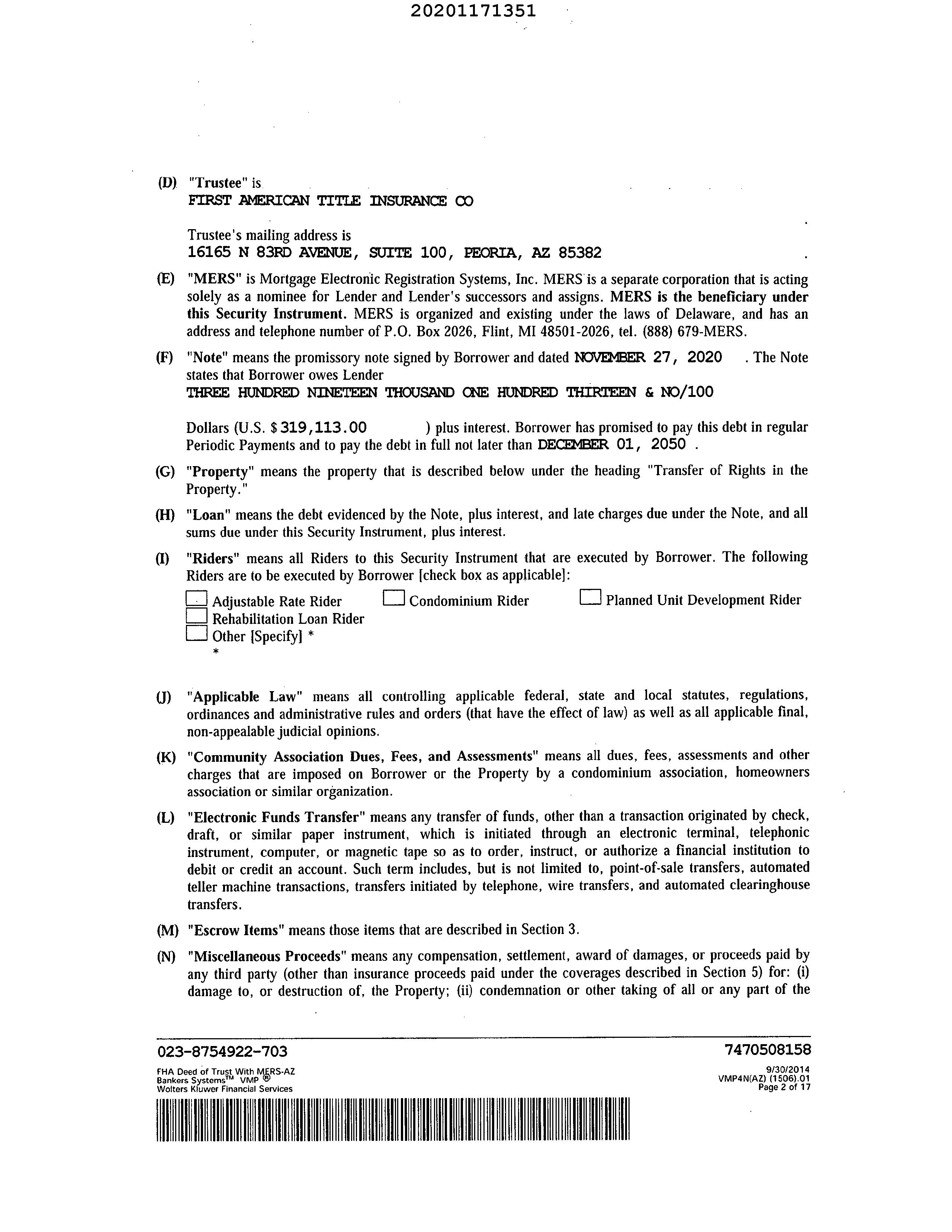 MARICOPA, AZ Document:DOT 2020.1171351 Page:2 of 18 Printed on:8/12/2022 4:32 PM Branch :FC0 User :JSTI