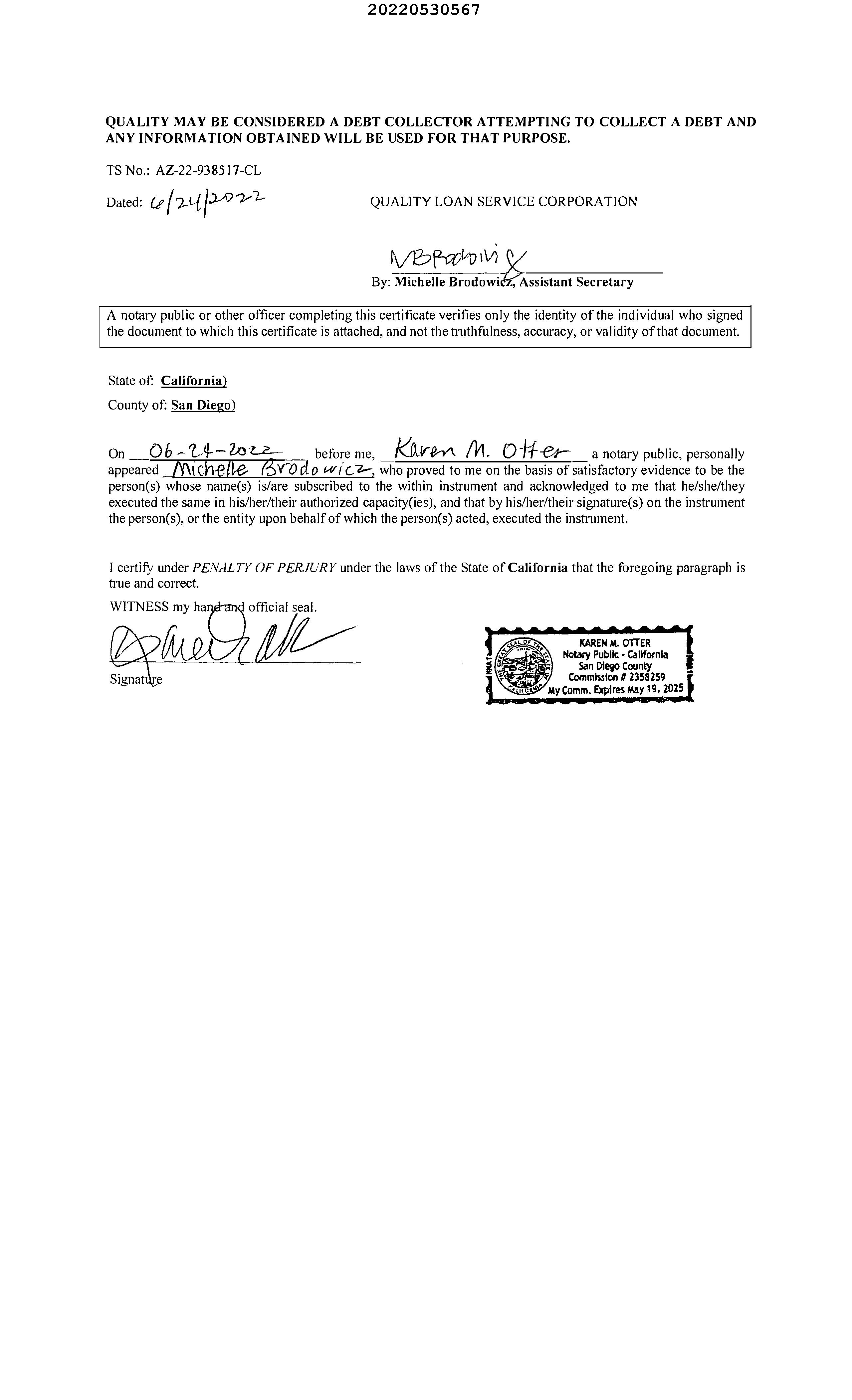 MARICOPA, AZ Document:DOT SLE 2022.530567 Page:1 of 3 Printed on:8/12/2022 4:32 PM Branch :FC0 User :JSTI