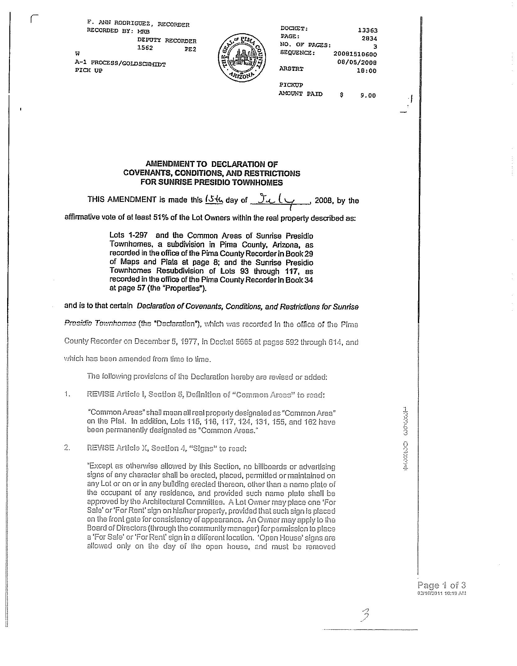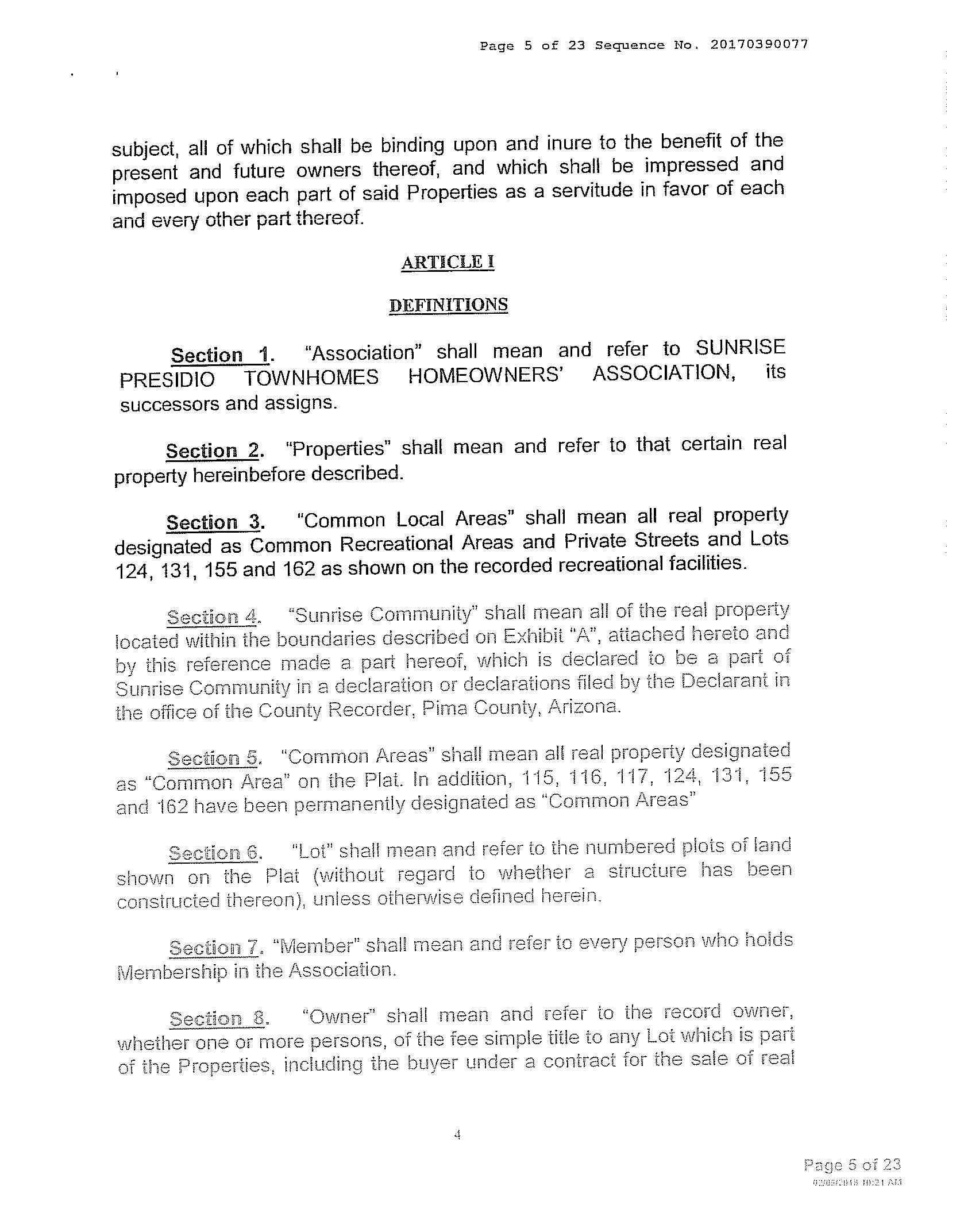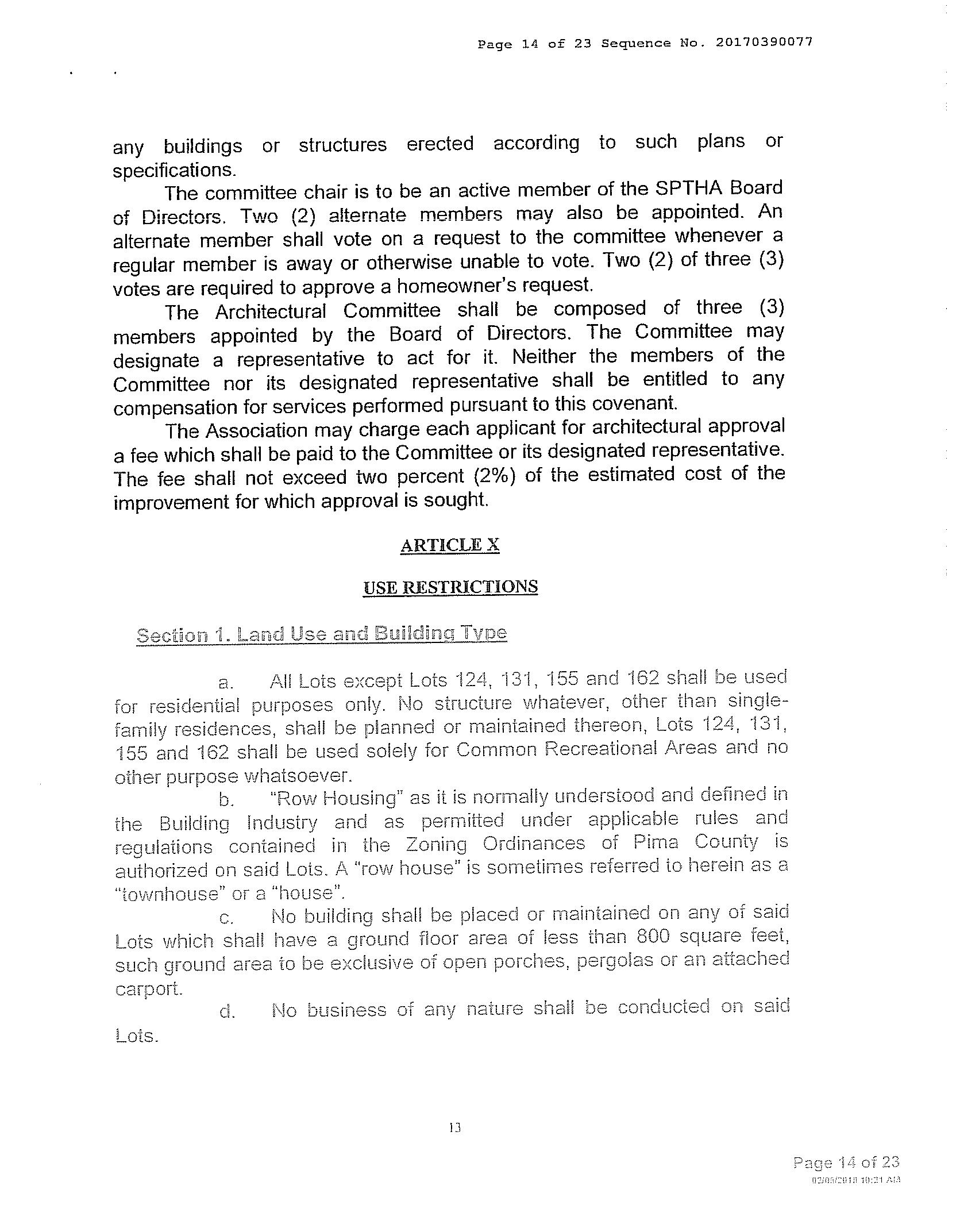©2021 First American Financial Corporation and/or its affiliates. All rights reserved. NYSE: FAF 05252610821 COVENANTS, CONDITIONS & RESTRICTIONS PREPARED FOR : First American Title Insurance Company, and the operating divisions thereof, make no express or implied warranty respecting the information presented and assume no responsibility for errors or omissions. First American, the eagle logo, First American Title, and firstam.com are registered trademarks or trademarks of First American Financial Corporation and/or its affiliates. 5072 North Camino Del Lazo Tucson, AZ 85750