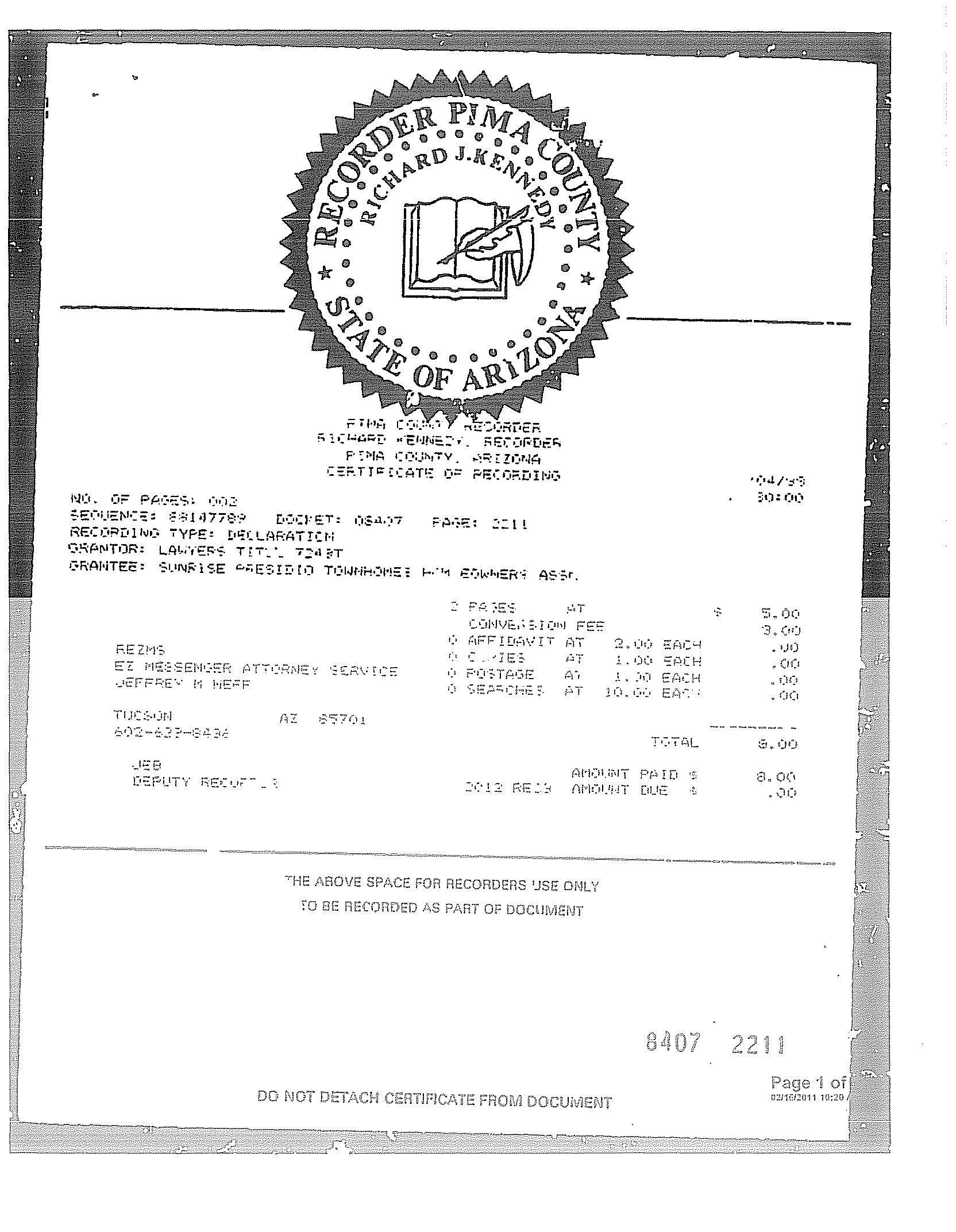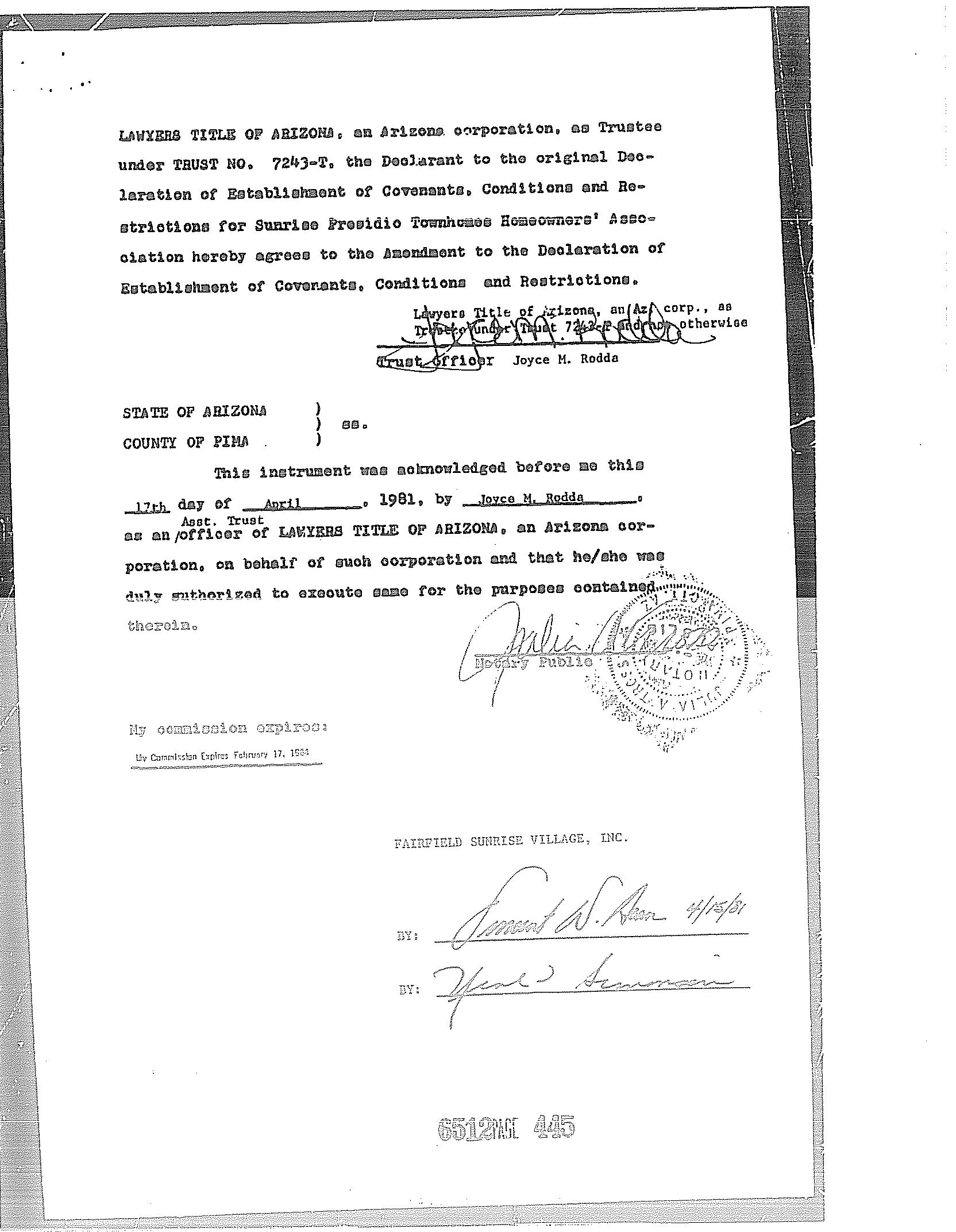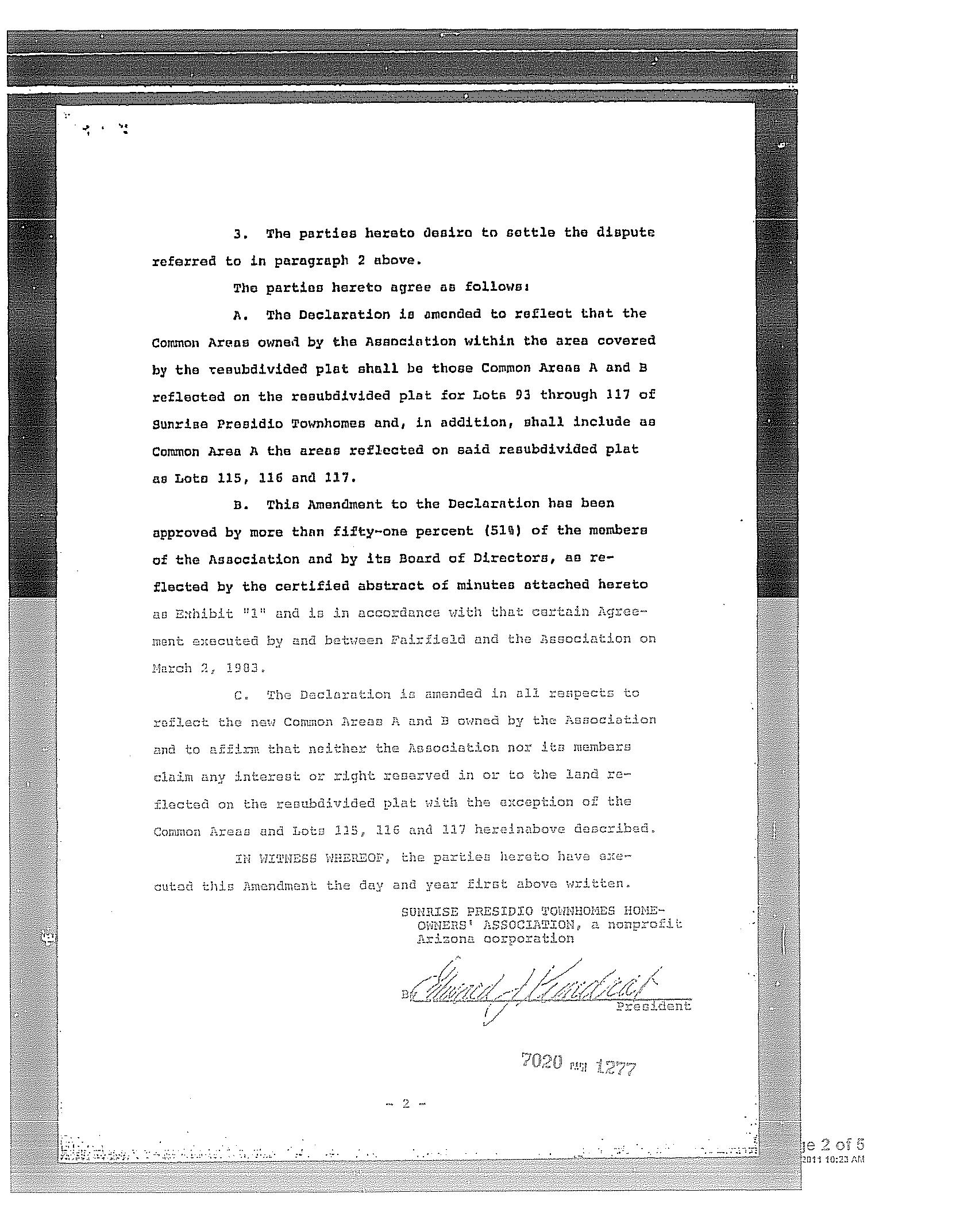 ©2021 First American Financial Corporation and/or its affiliates. All rights reserved. NYSE: FAF 05252610821 COVENANTS, CONDITIONS & RESTRICTIONS PREPARED FOR : First American Title Insurance Company, and the operating divisions thereof, make no express or implied warranty respecting the information presented and assume no responsibility for errors or omissions. First American, the eagle logo, First American Title, and firstam.com are registered trademarks or trademarks of First American Financial Corporation and/or its affiliates. 5072 North Camino Del Lazo Tucson, AZ 85750