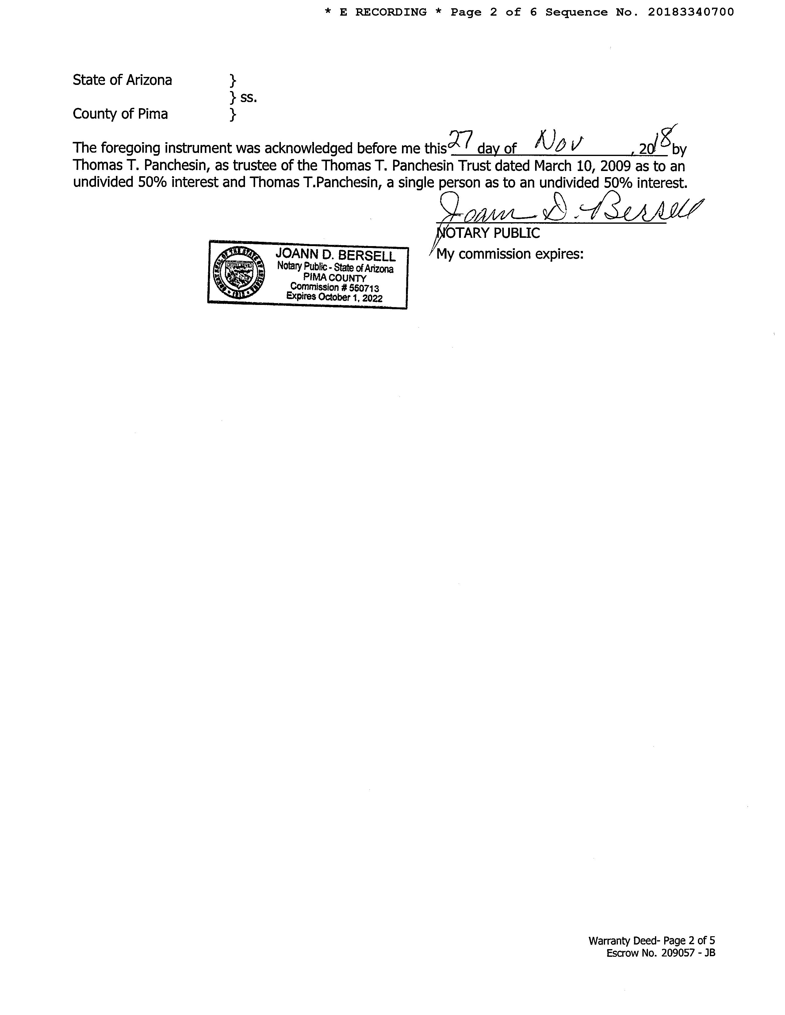 Sale / Rec Date: 11/20/2018 / 11/30/2018 Sale Price / Type: $119,500 / Deed Type: General Warranty Deed Multi / Split Sale: Price / Sq Ft : New Construction: 1st Mtg Amt / Type: $107,500 / 1st Mtg Rate / Type: 4 8 / Estimated 1st Mtg Doc #: 2018 334 701 2nd Mtg Amt / Type: 2nd Mtg Rate / Type: $5 / Sale Doc #: 2018 334 700 Seller Name: Panchesin Thomas T Lender: Thomas T Panchesin Trust Title Company: Pioneer Title Agen