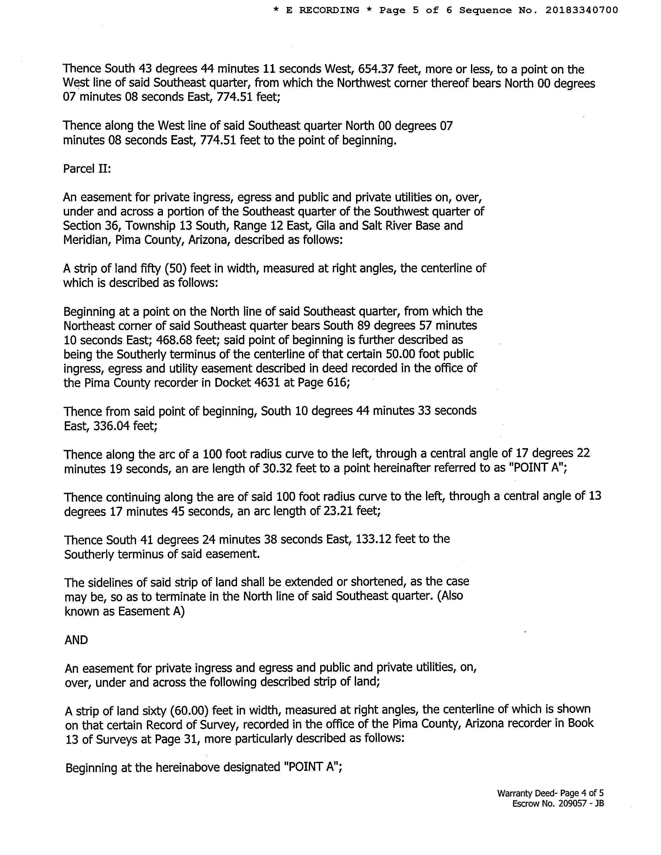 Legal Description: Wly Tri Ptn N774.51 & N Ctrl Strp Lyg E & Adj Se4 Sw4 5.16 Ac Sec 36-1312 County: Pima, AZ