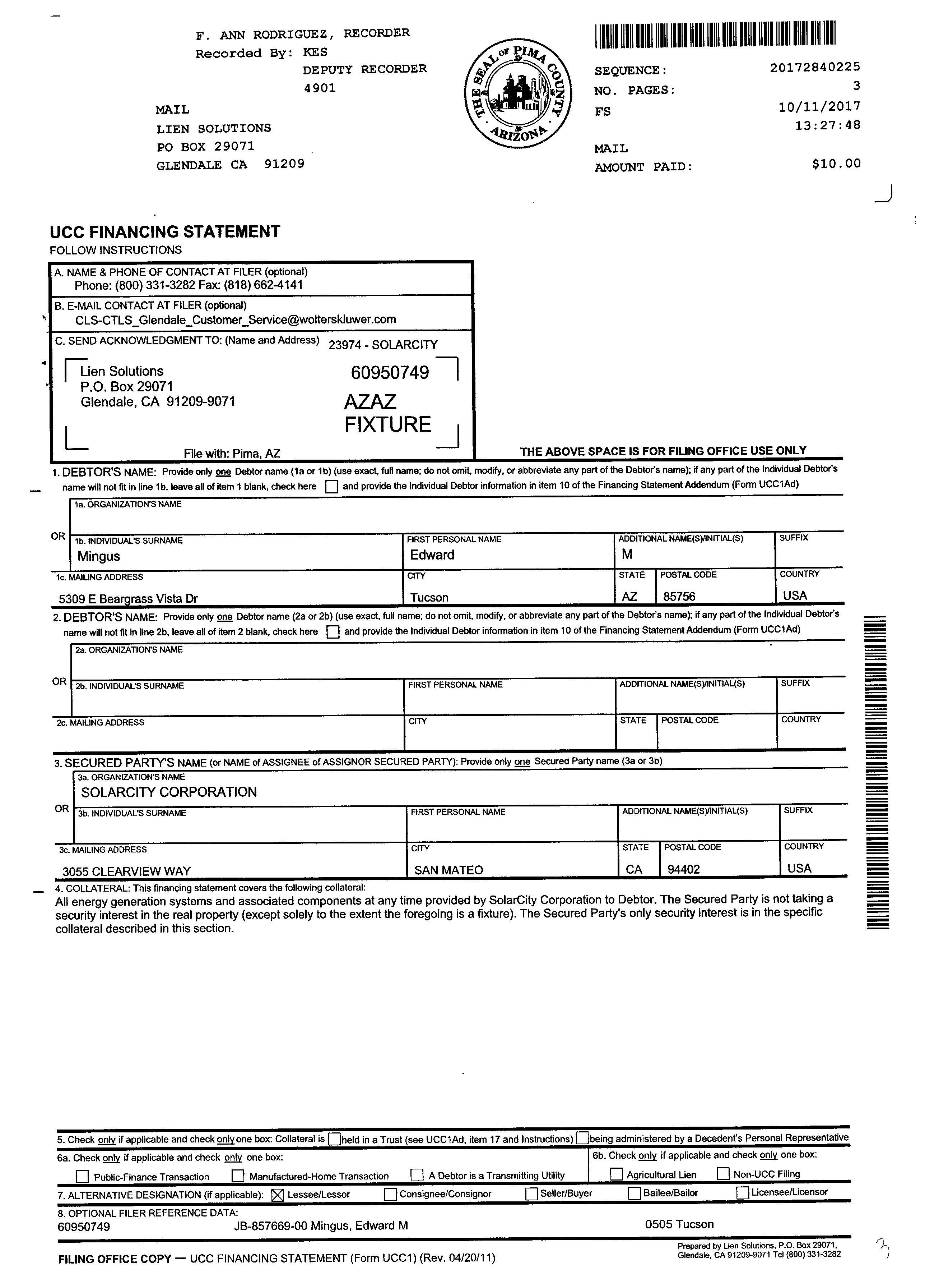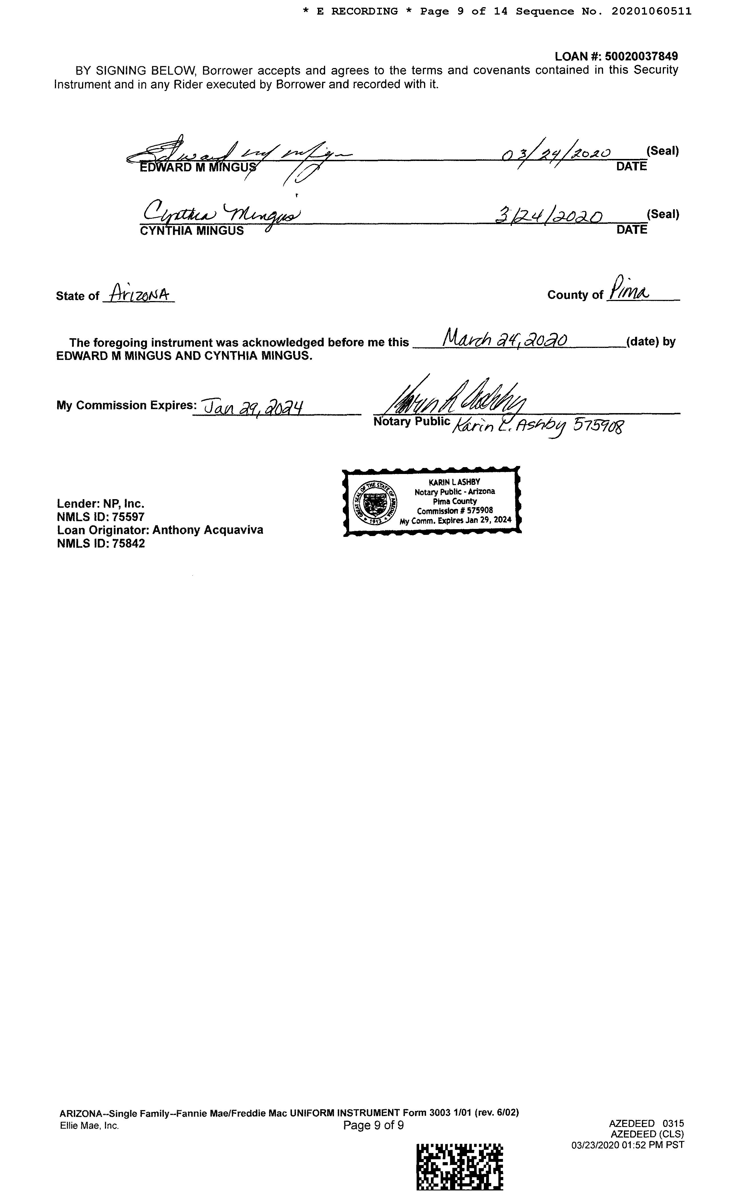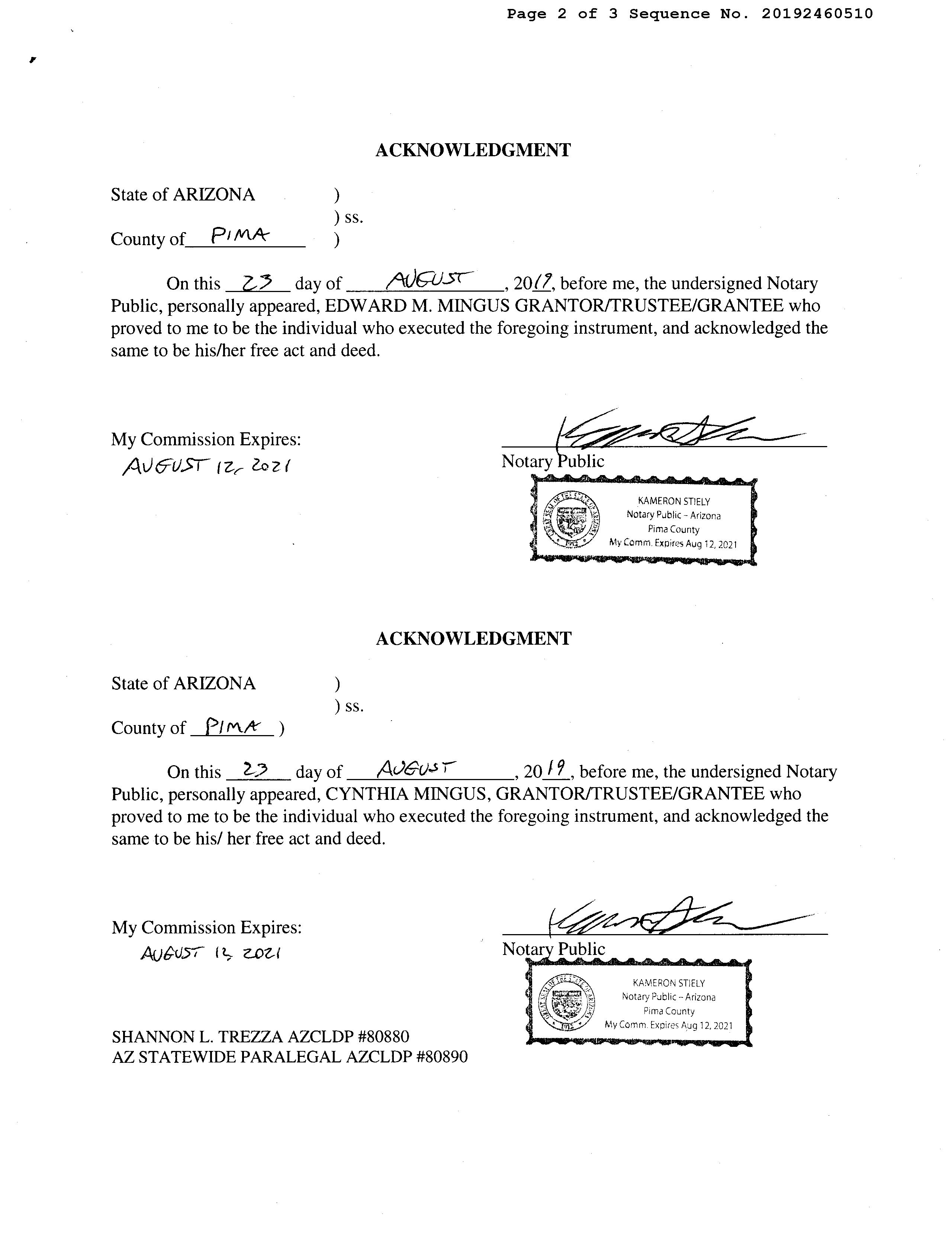 OWNER: MINGUS EDWARD M     13371 2669 08/15/2008  SITUS: 5309 E BEARGRASS VISTA DR TUC