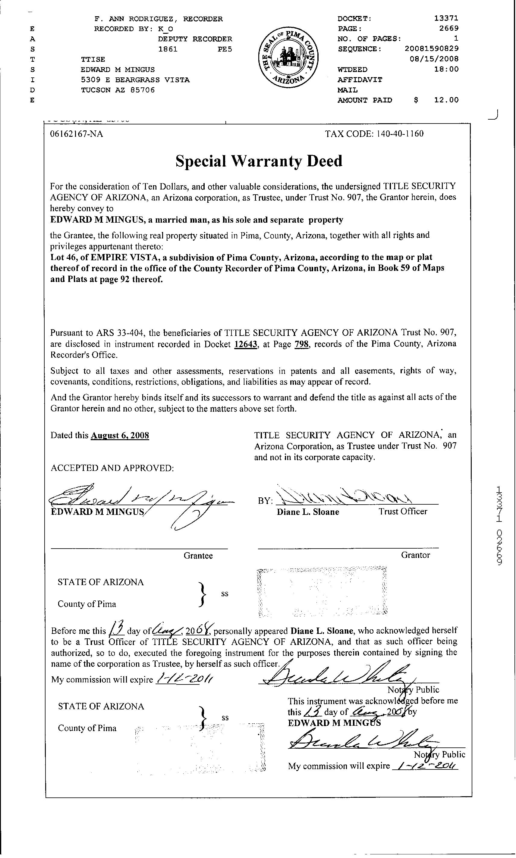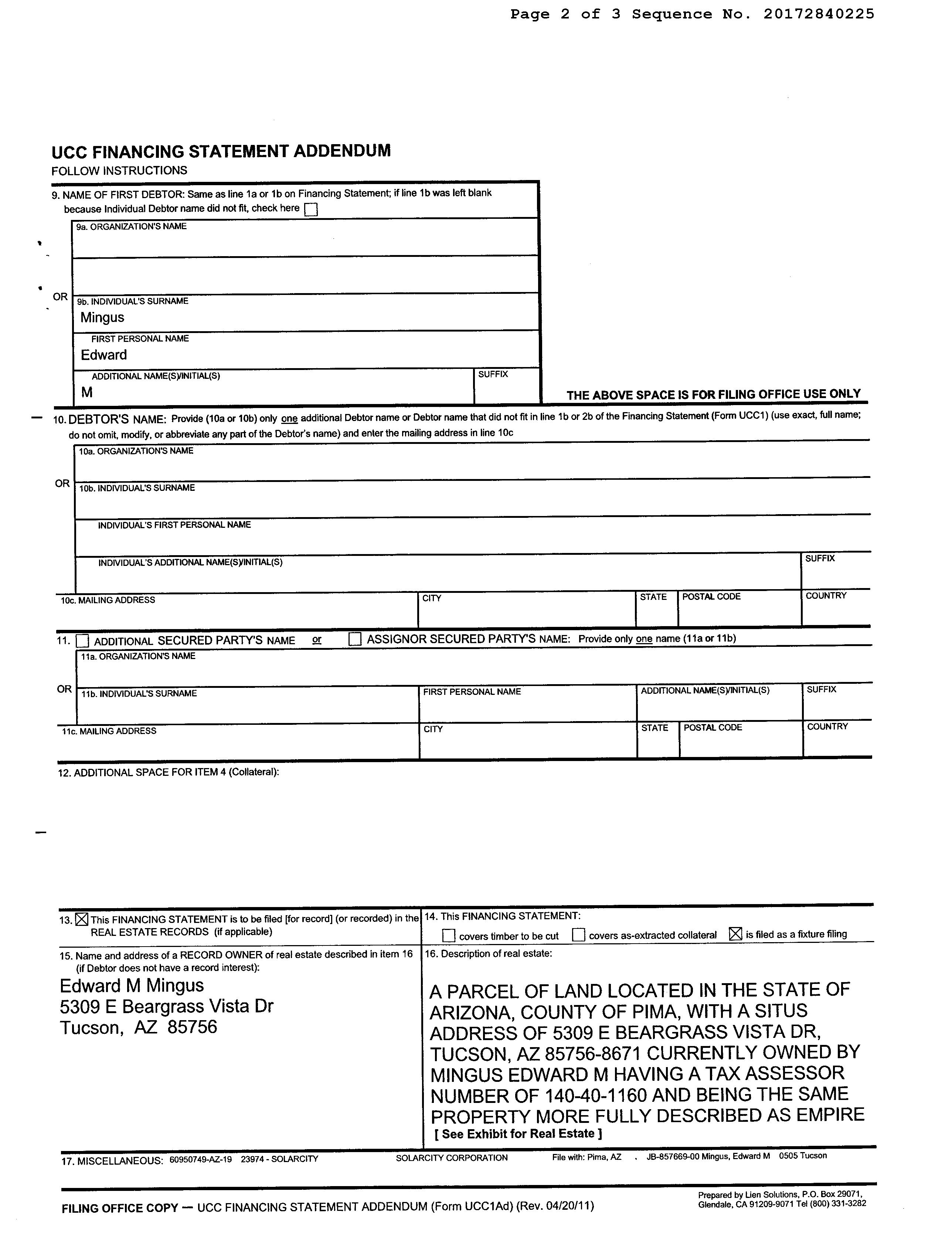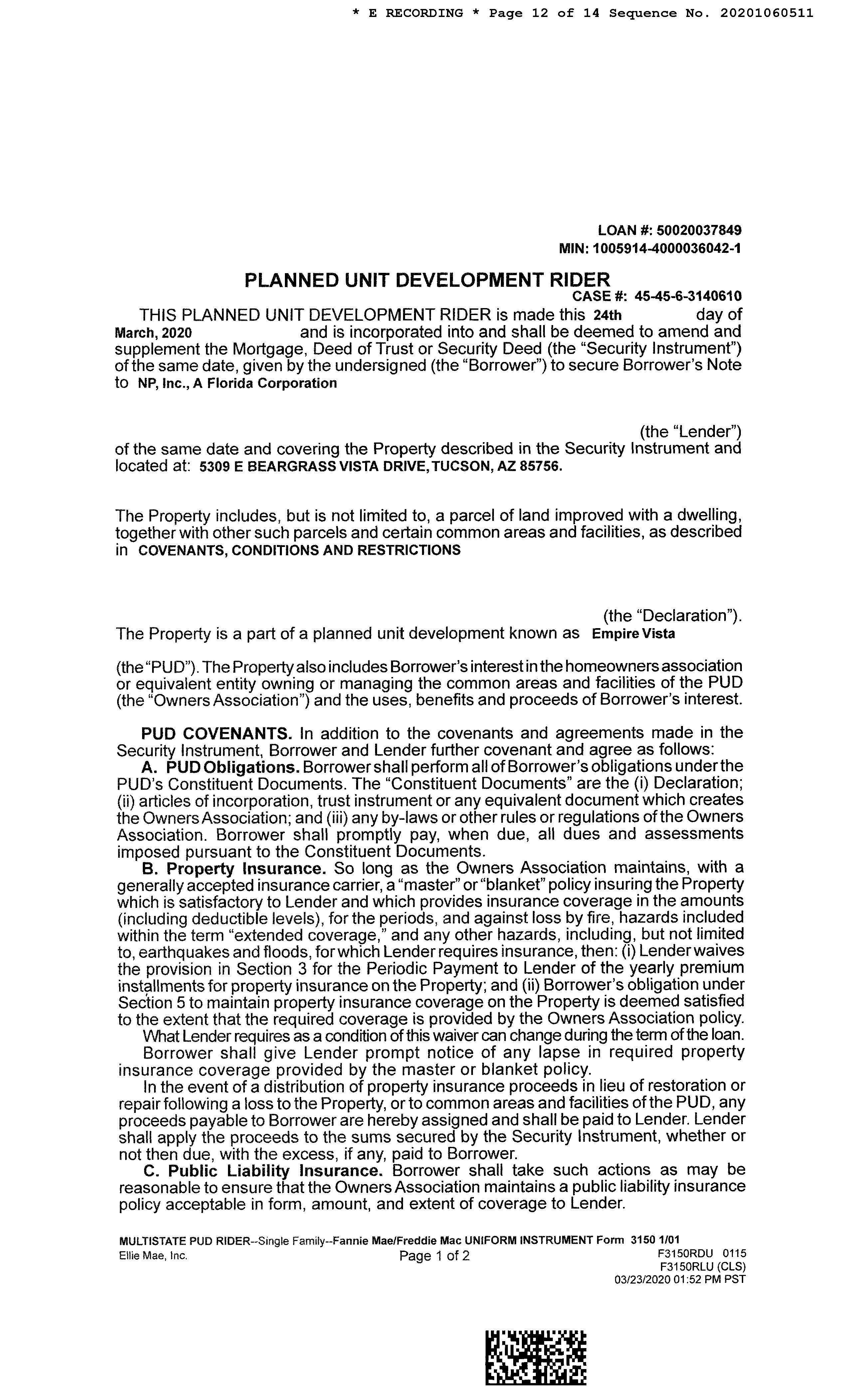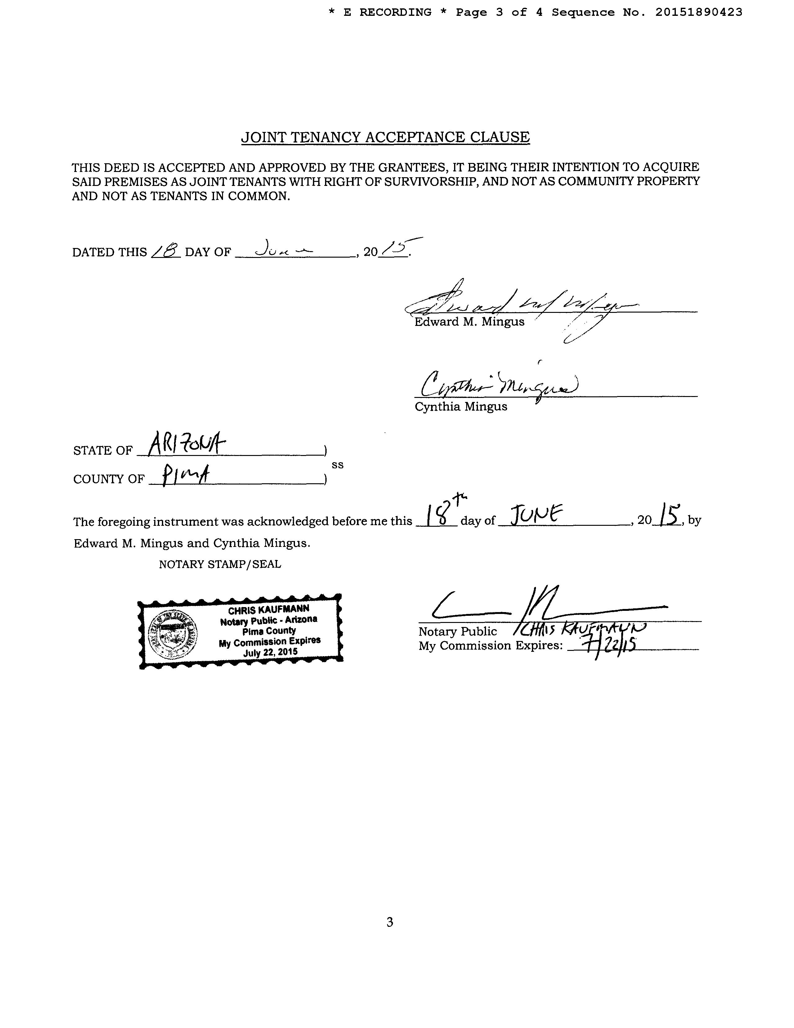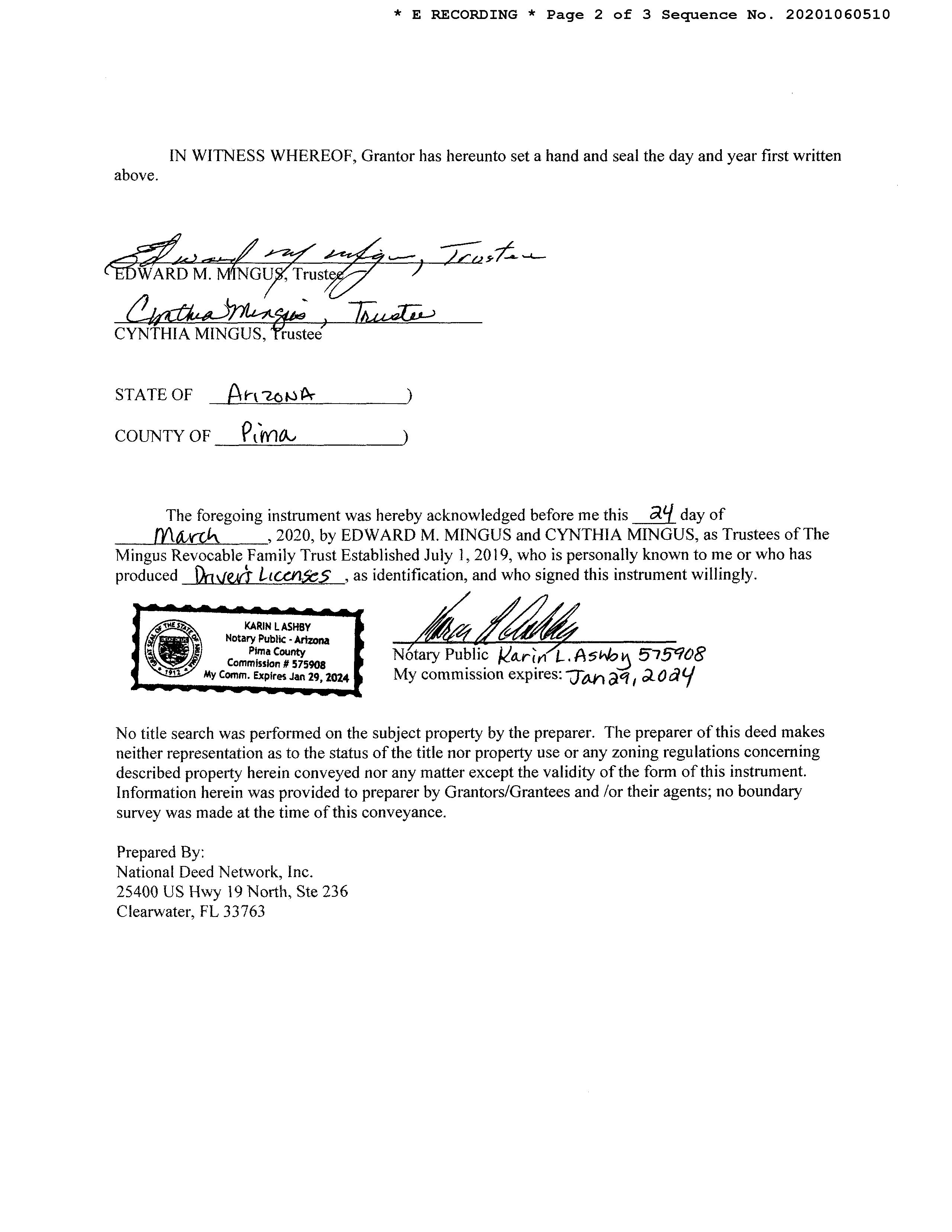 OWNER: MINGUS EDWARD M 13371 2669 08/15/2008 SITUS: 5309 E BEARGRASS VISTA DR TUC