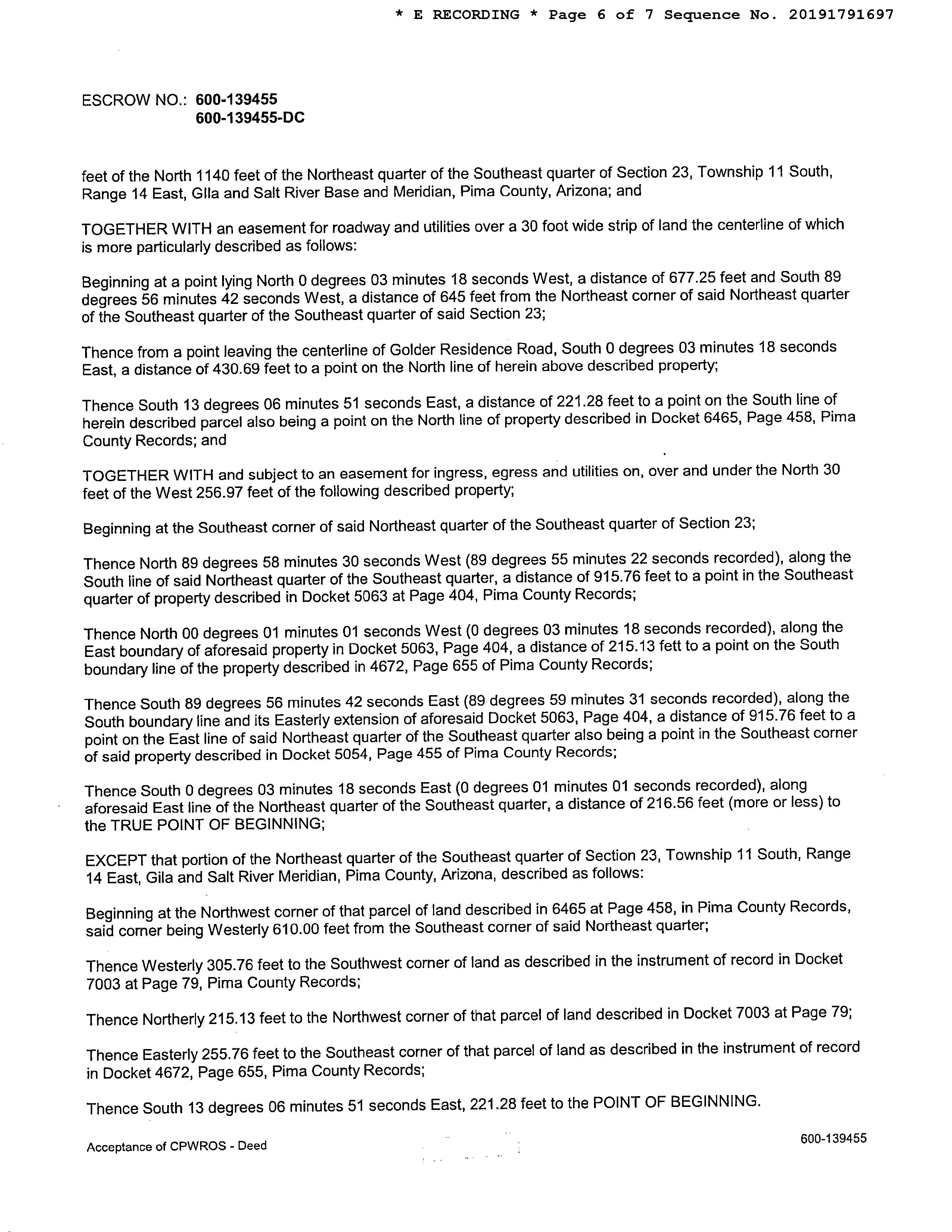 Mailing Address : 5440 E Golder Ranch Dr, Tucson AZ 85739-4263 R019