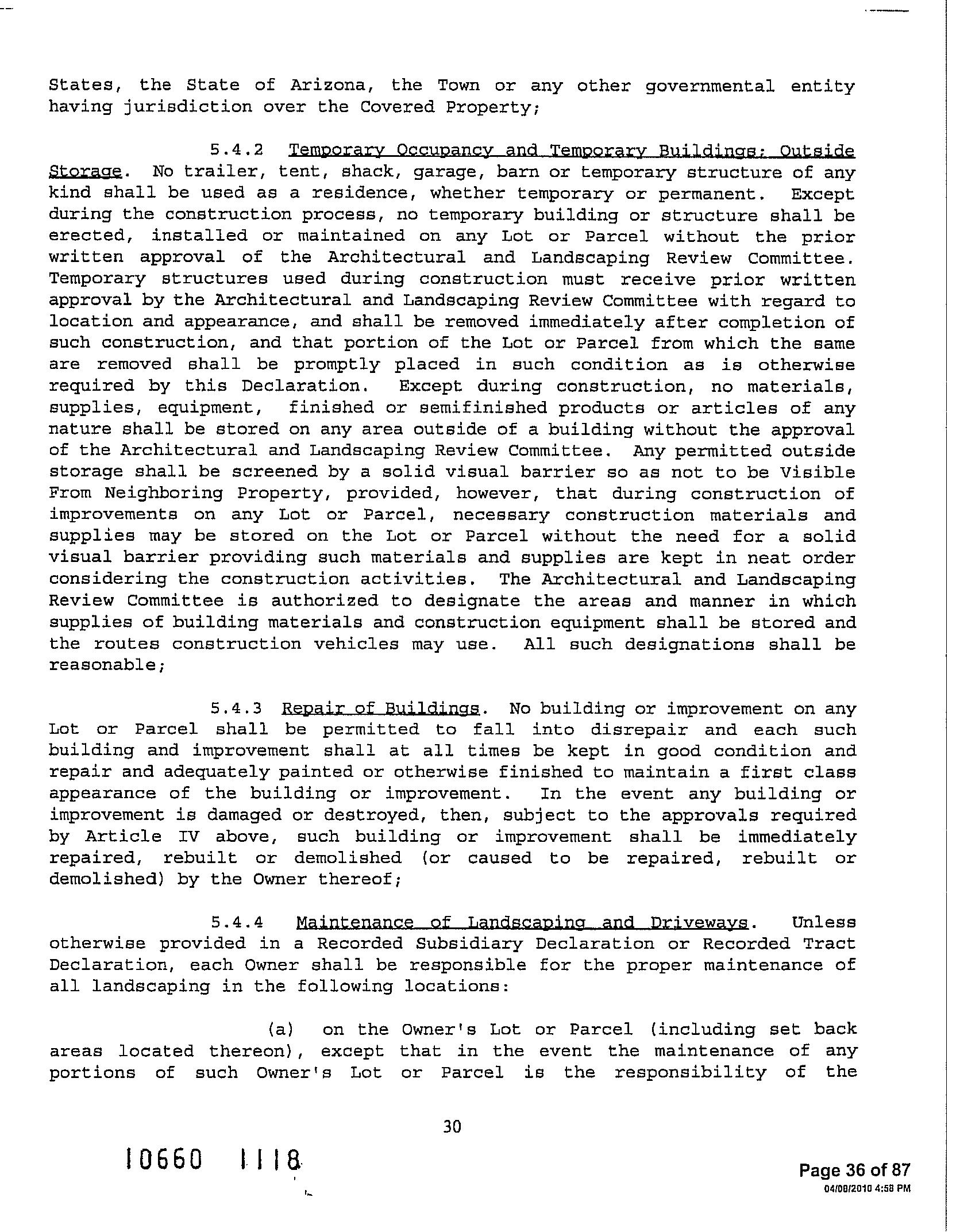 ©2021 First American Financial Corporation and/or its affiliates. All rights reserved. NYSE: FAF 05252610821 COVENANTS, CONDITIONS & RESTRICTIONS PREPARED FOR : First American Title Insurance Company, and the operating divisions thereof, make no express or implied warranty respecting the information presented and assume no responsibility for errors or omissions. First American, the eagle logo, First American Title, and firstam.com are registered trademarks or trademarks of First American Financial Corporation and/or its affiliates. 5563 W. Guild Springs Street Marana, AZ 85658