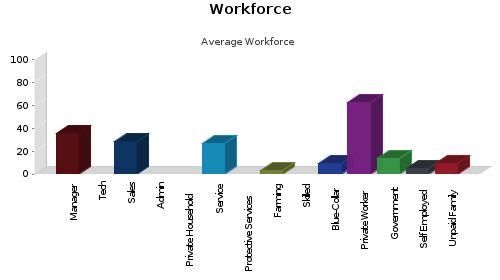 Manager/Prof: 35.72% Private Worker: 62.75% Technical: Government Worker: 13.91% Sales: 28.19% Self Employed Worker: 5.11%