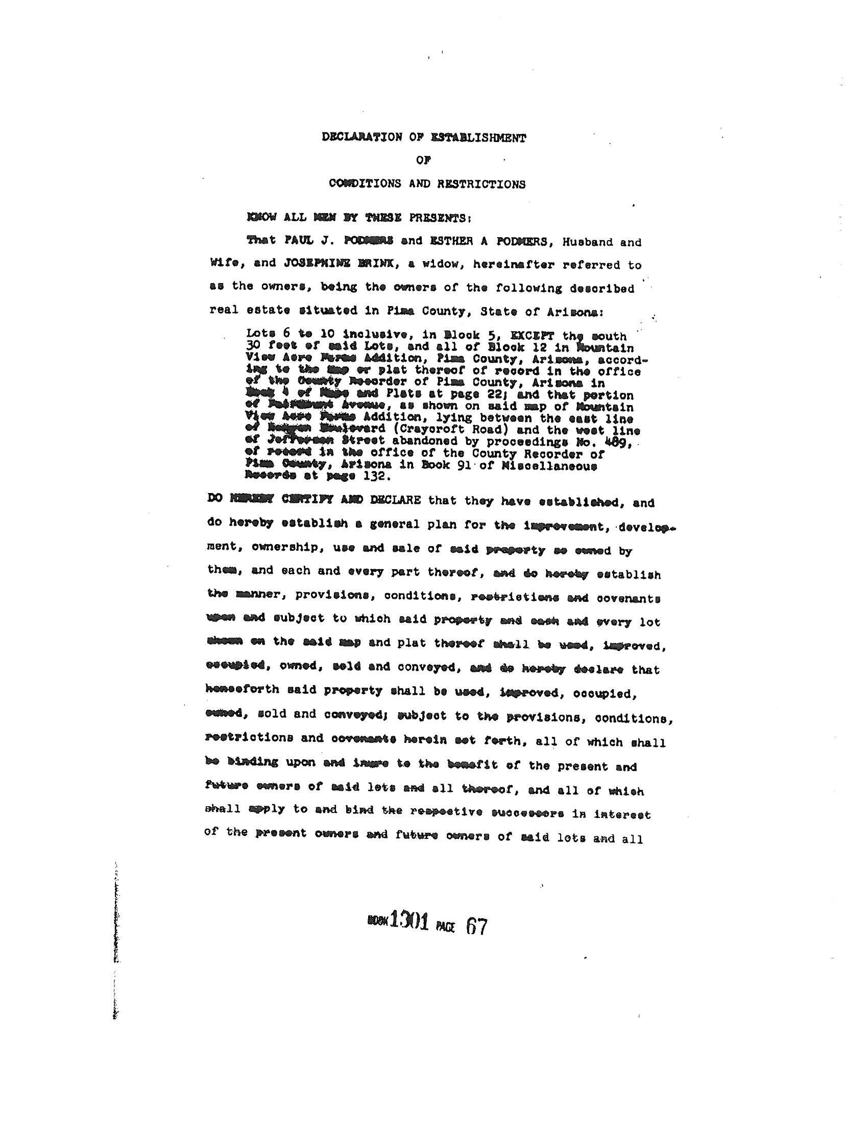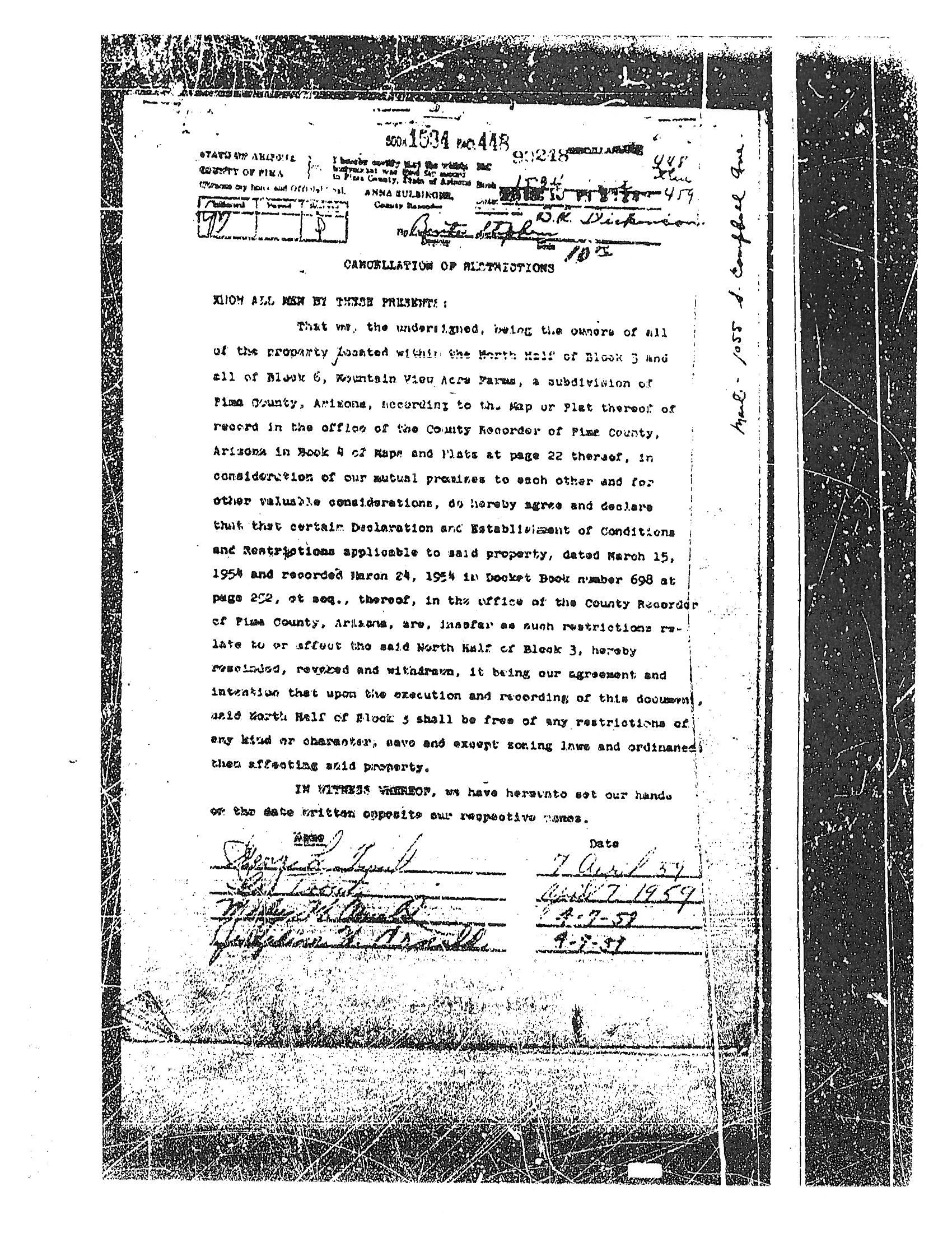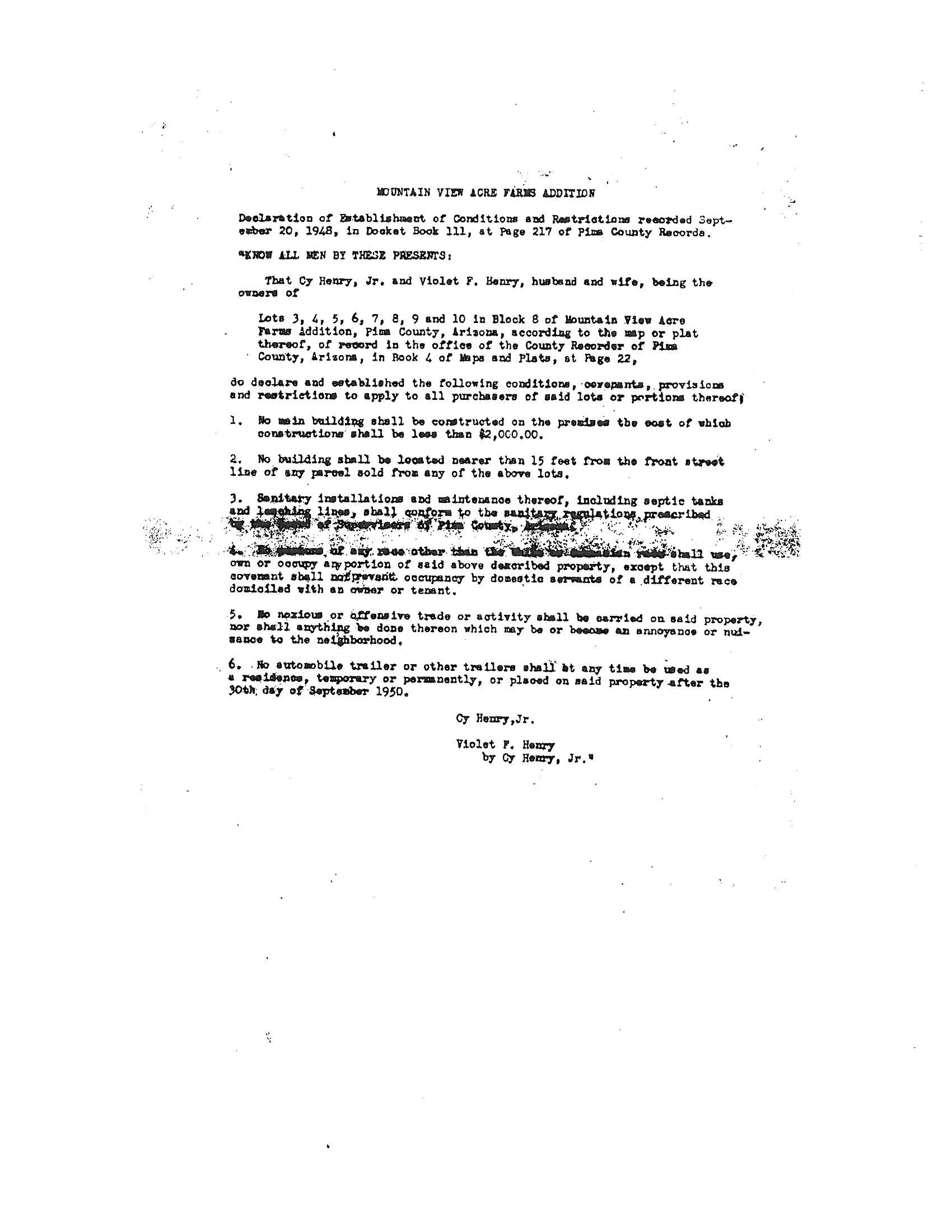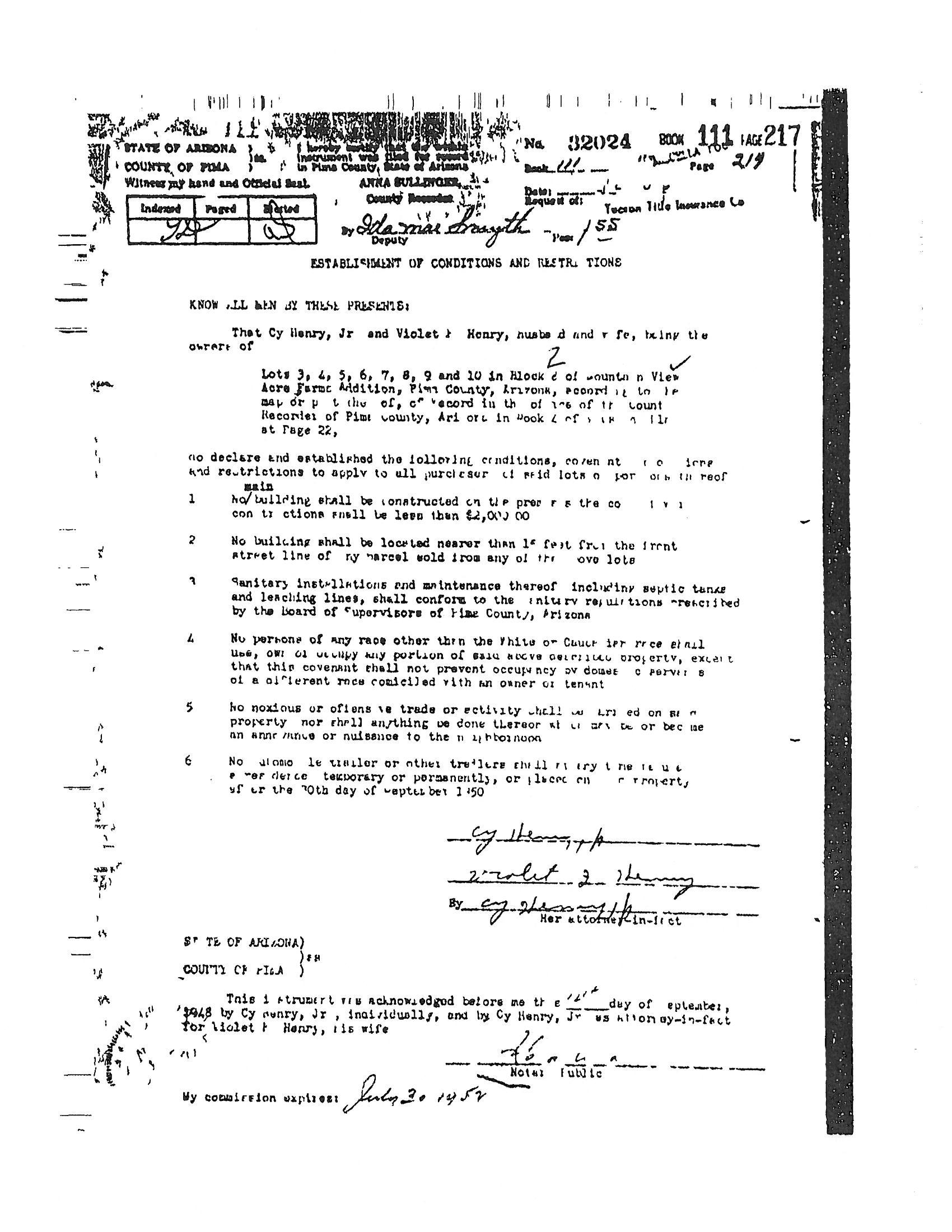 ConditionsCovenants,&Restrictions Thank you for the opportunity to be of service. Restrictions indicating a preference, limitation or discrimination based on race, color, religion, sex, handicap, familial status, or national origin are hereby deleted to the extent such restrictions violate 42 USC 3604(c). This information is furnished without fee and without benefit of a complete title search. No liability is assumed by First American Title or Title Security. If it is desired that liability be assumed, you may apply for a policy of title insurance with First American Title Insurance Company.