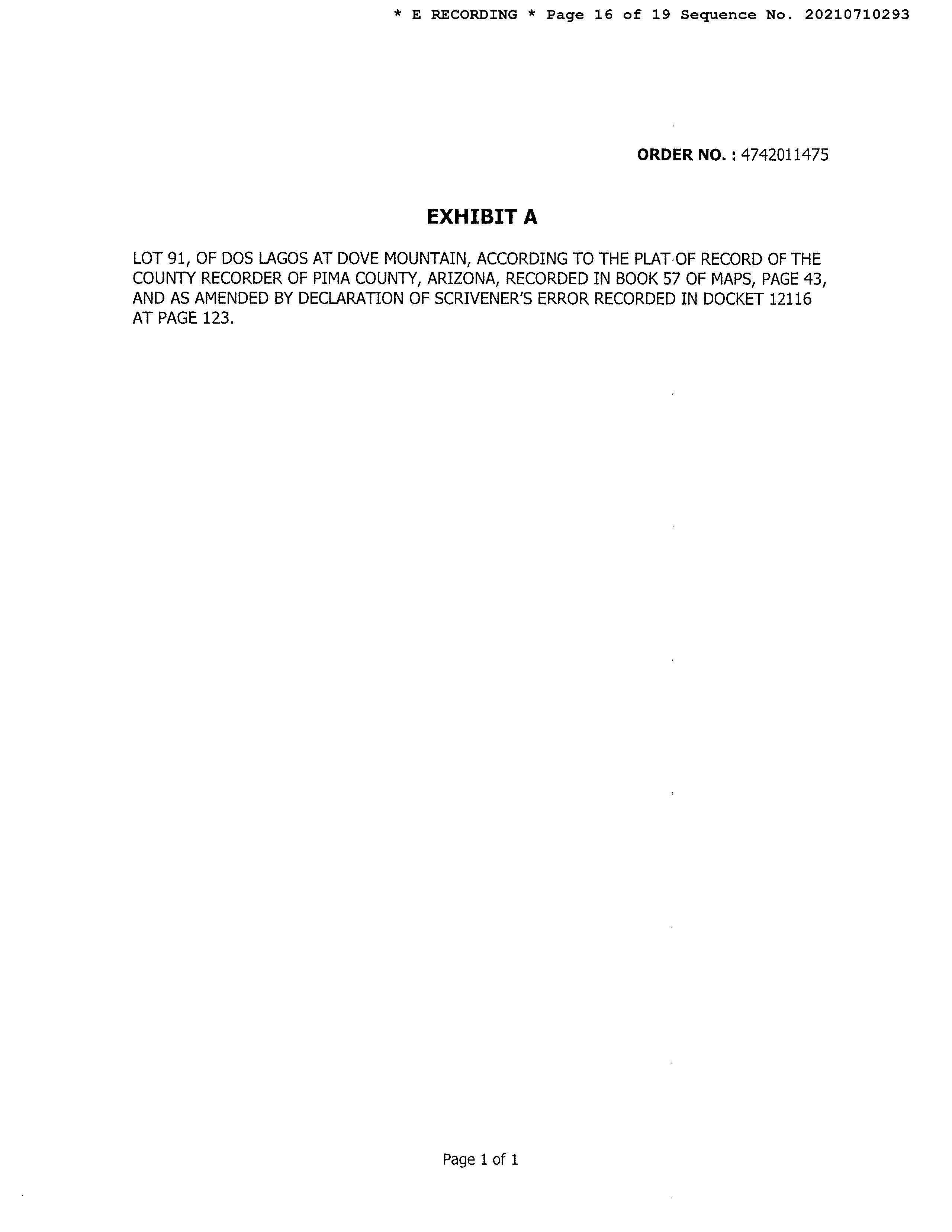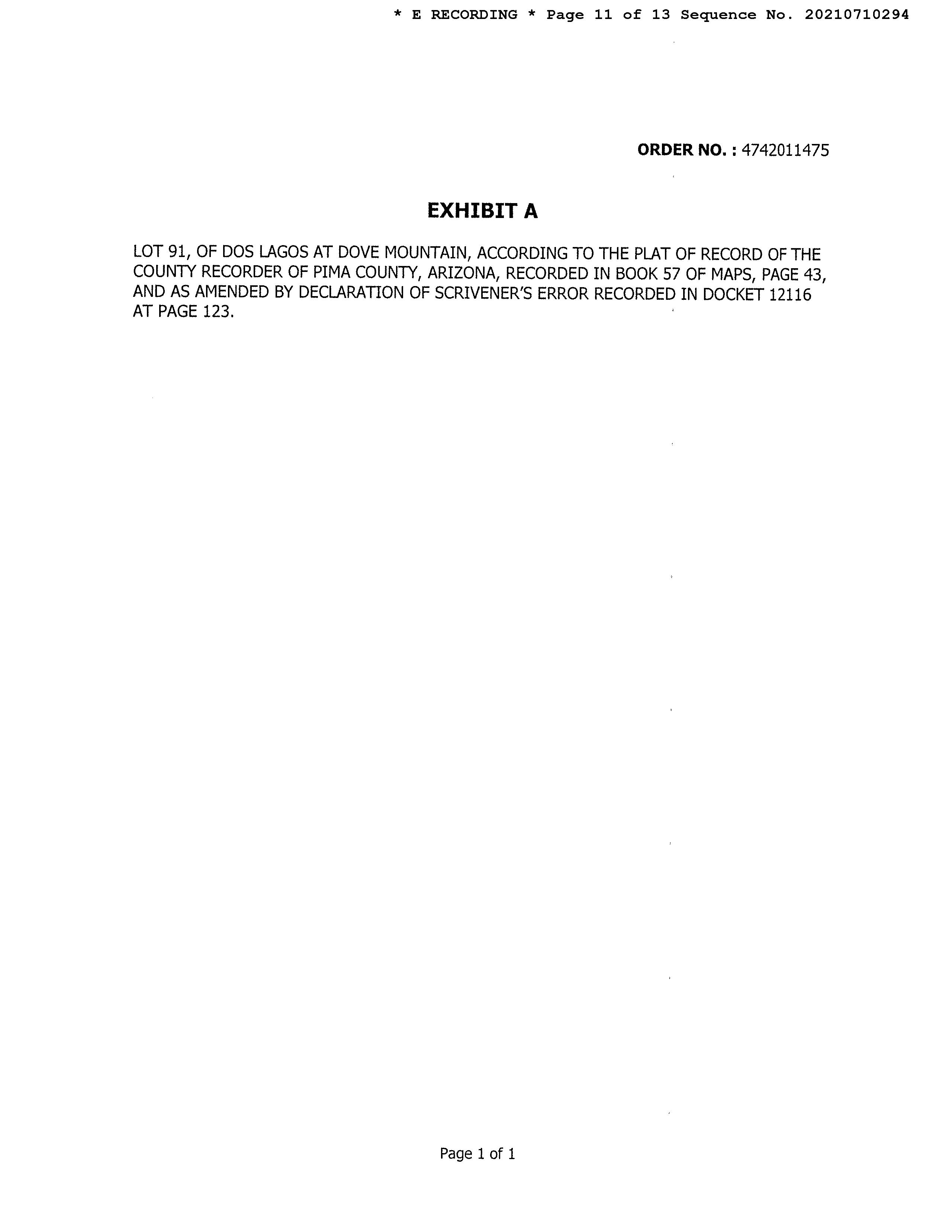 Legal Description : Dos Lagos At Dove Mountain Lot 91