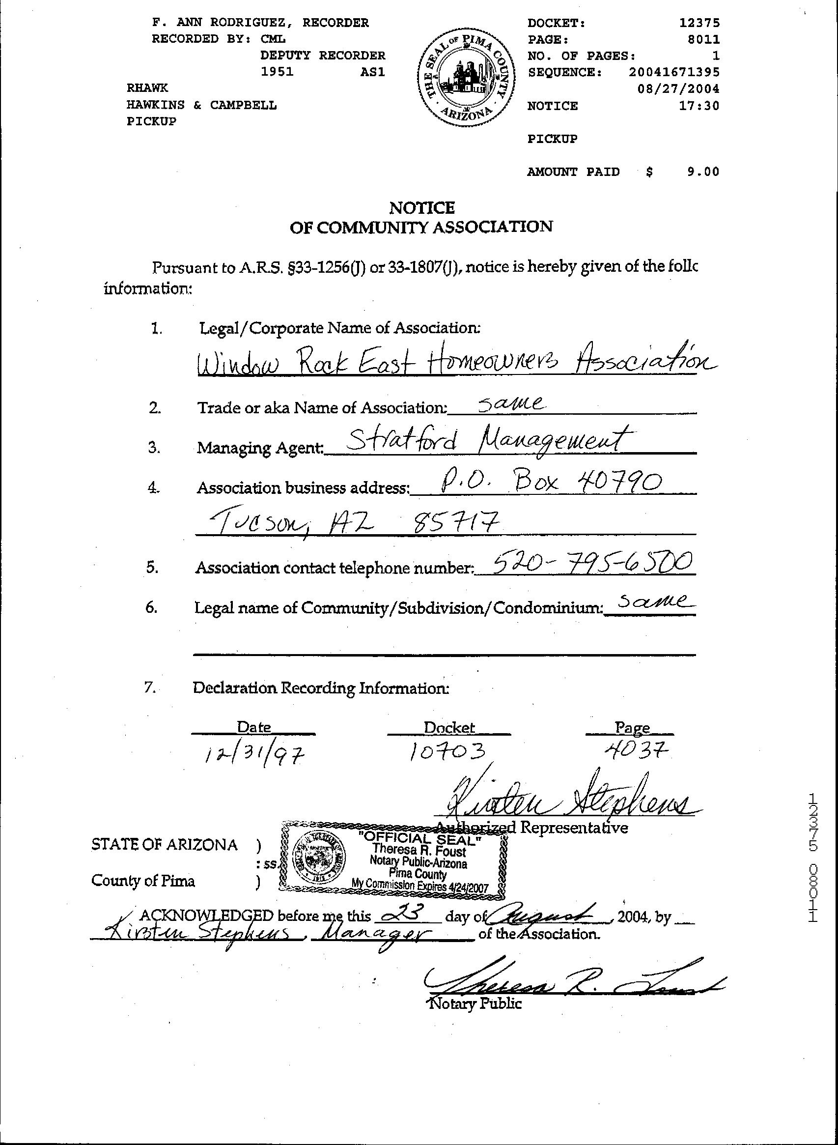 Mailing Address : 6068 E Rough Rock Dr, Tucson AZ 85756-9568 R129