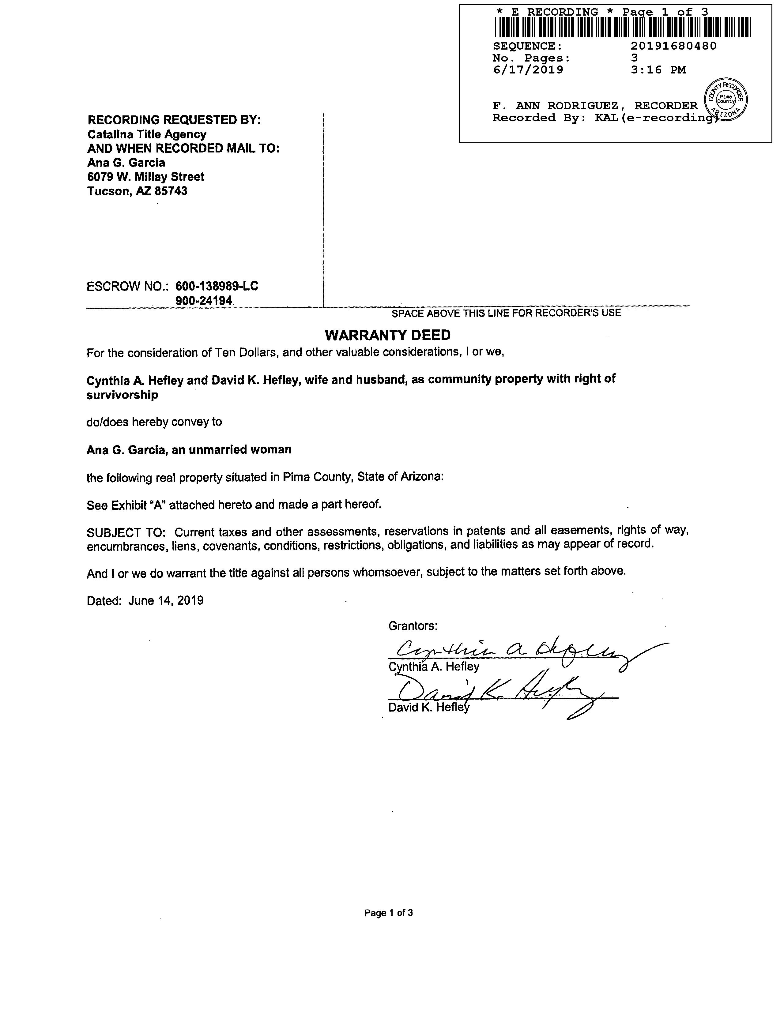 Subject Property : 6079 W Millay St Tucson AZ 85743