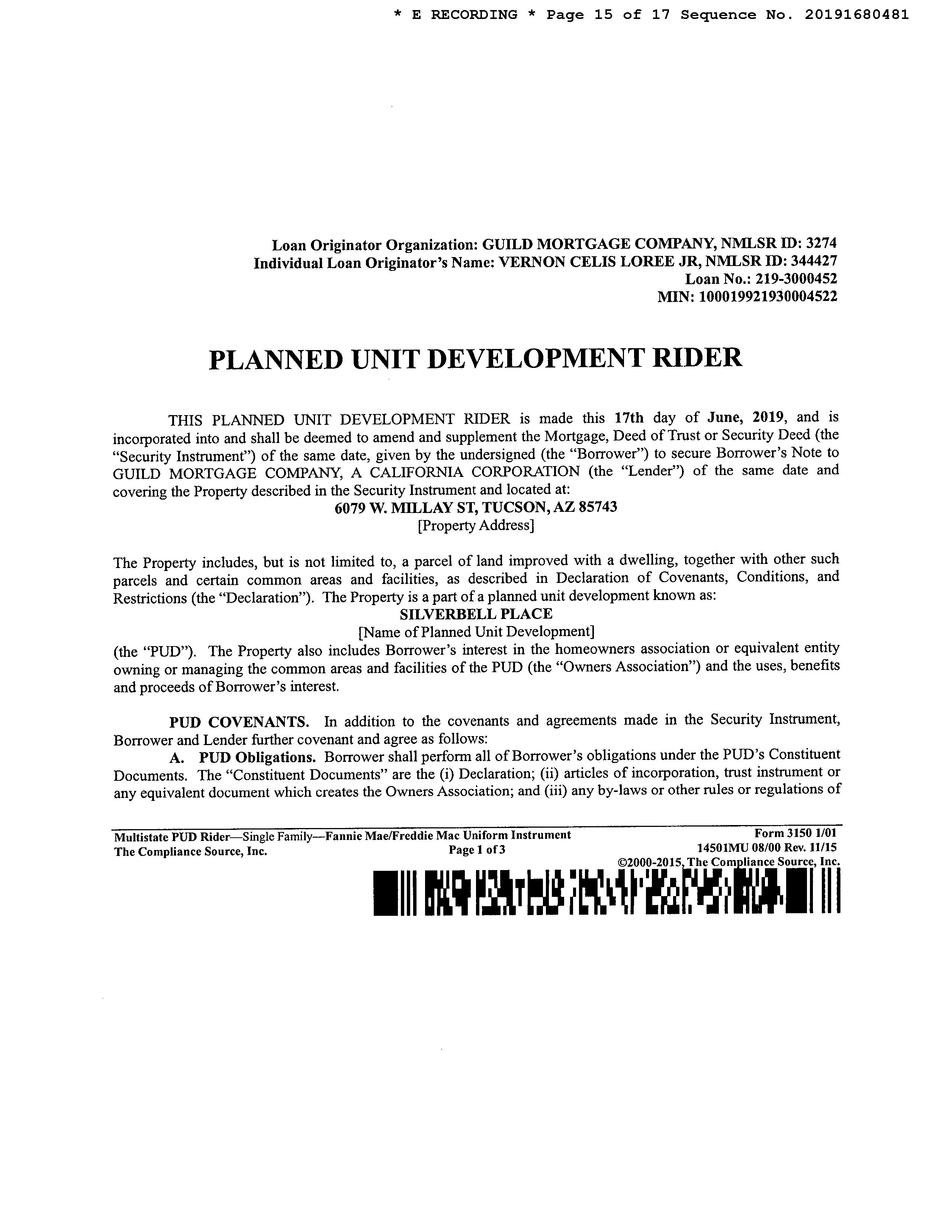 Mailing Address : 6079 W Millay St, Tucson AZ 85743-8260 R171