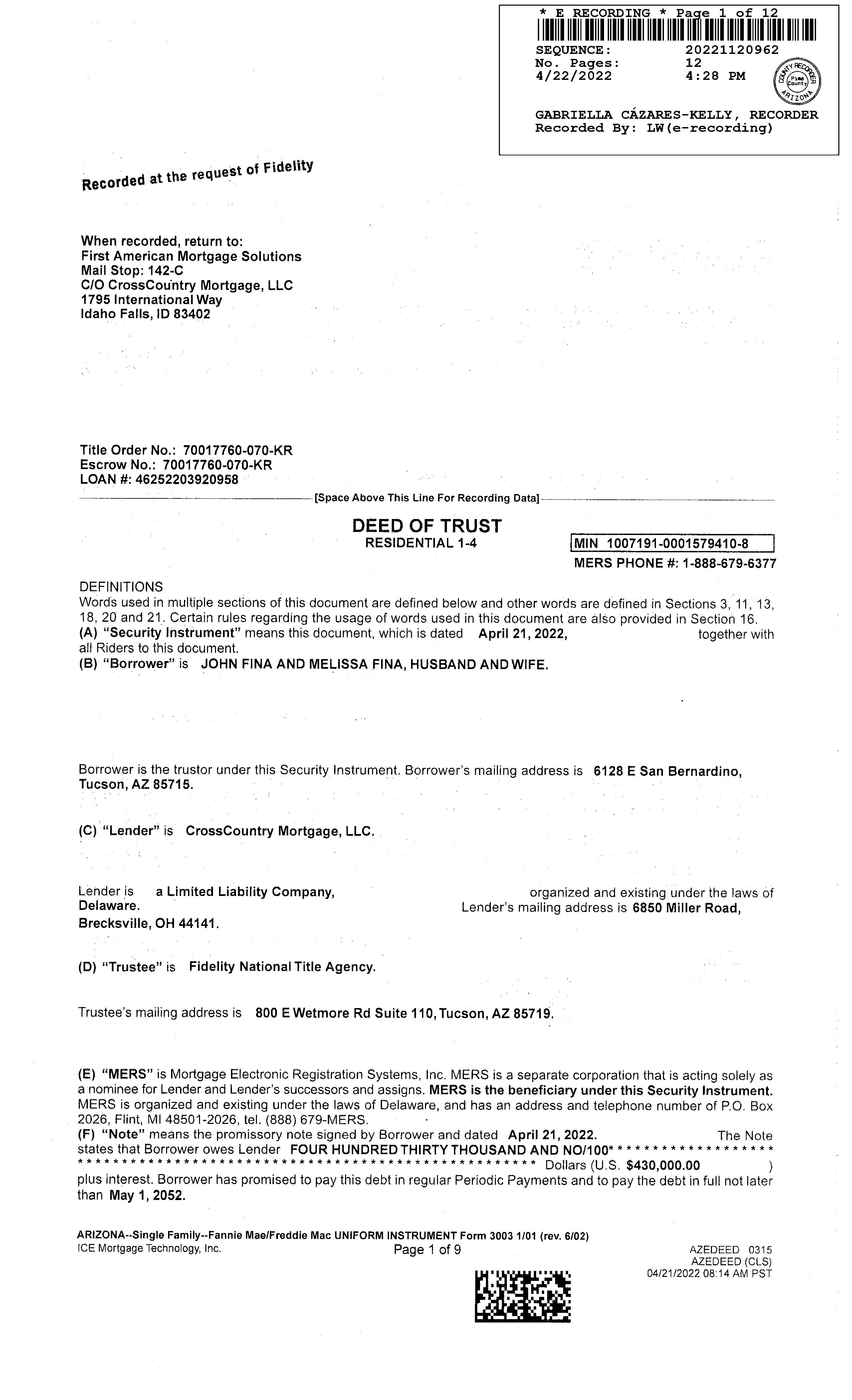 Title Company : Fidelity Nat'l Title Agcy Inc