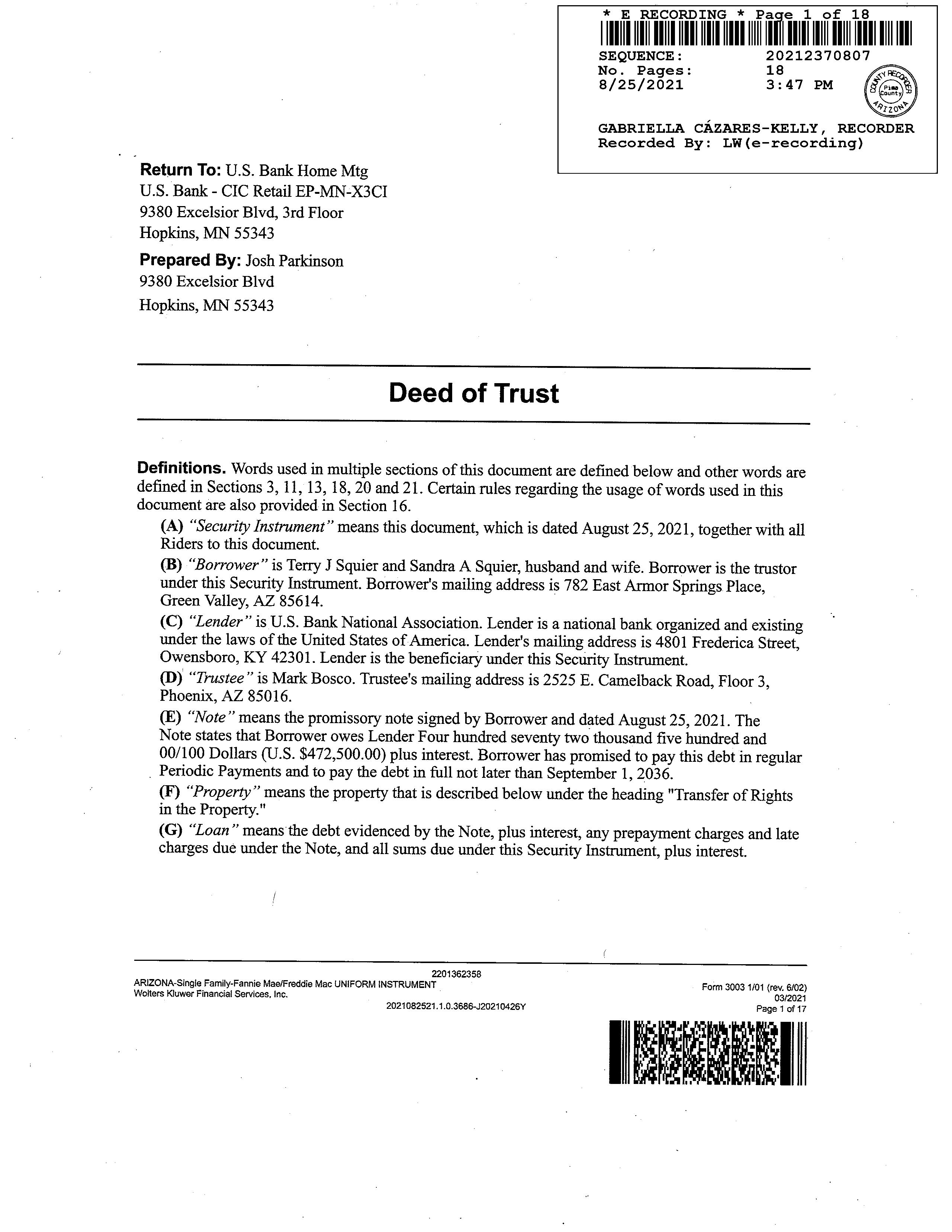 Owner Name : Squier T J & S A Living Trust