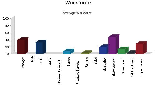 Manager/Prof: 40.09% Private Worker: 47.41% Technical: Government Worker: 13.79% Sales: 33.19% Self Employed Worker: 3.02%
