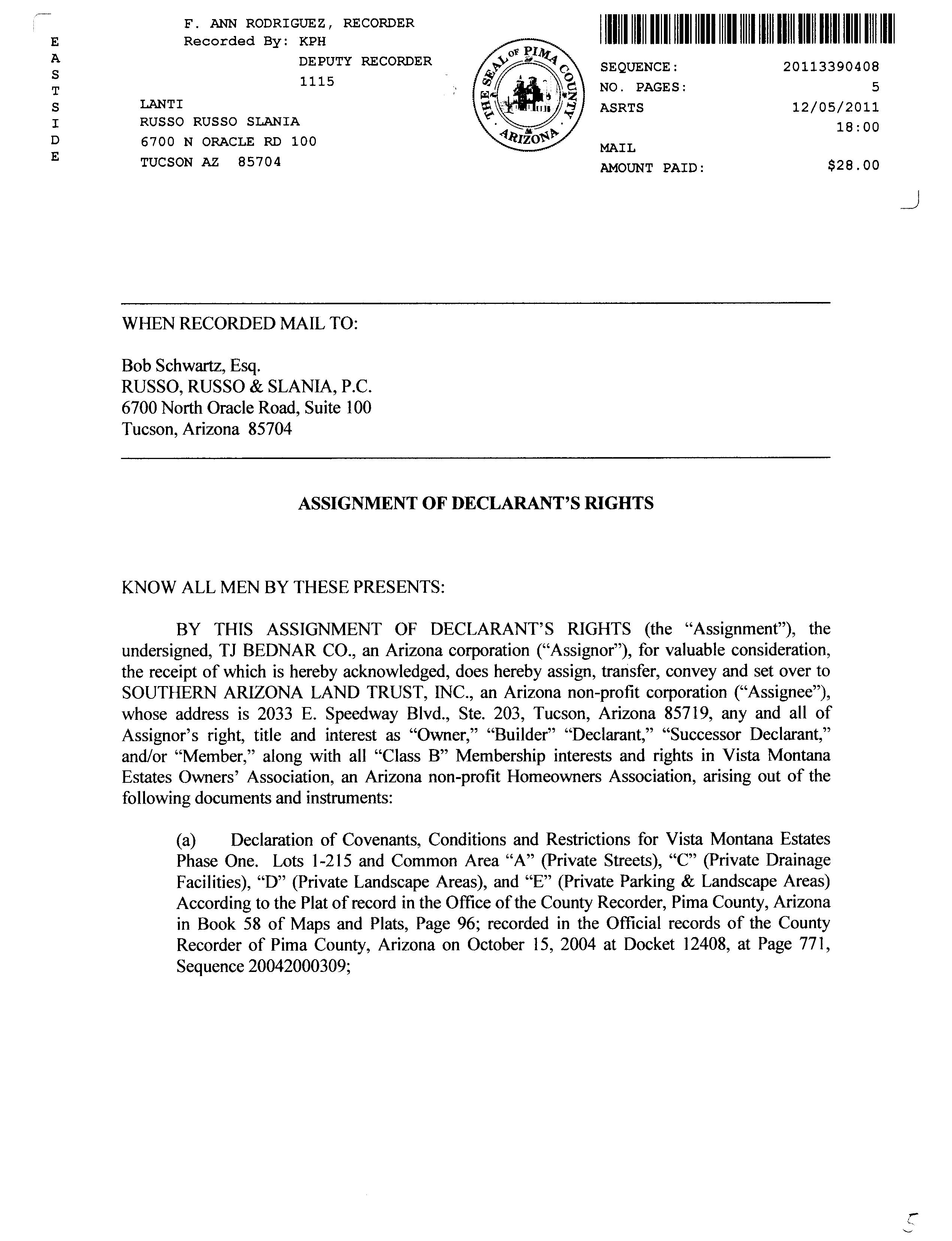 Legal Description : Vista Montana Estates Lot 238 Exc Mineral Rights Below 30-ft County : Pima, Az