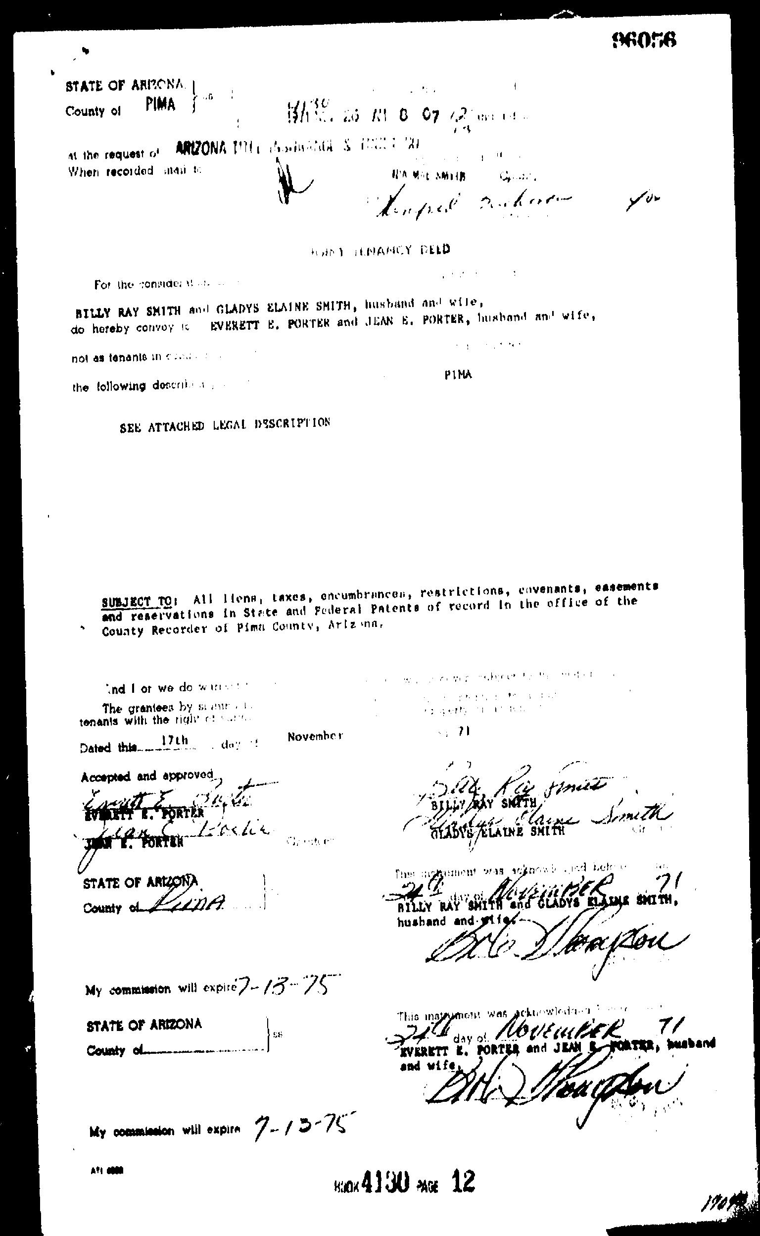 OWNER: PORTER EVERETT E & JEAN E JT/RS 4130 12 11/26/1971 SITUS: 6608 S BURCHAM AV TUC
