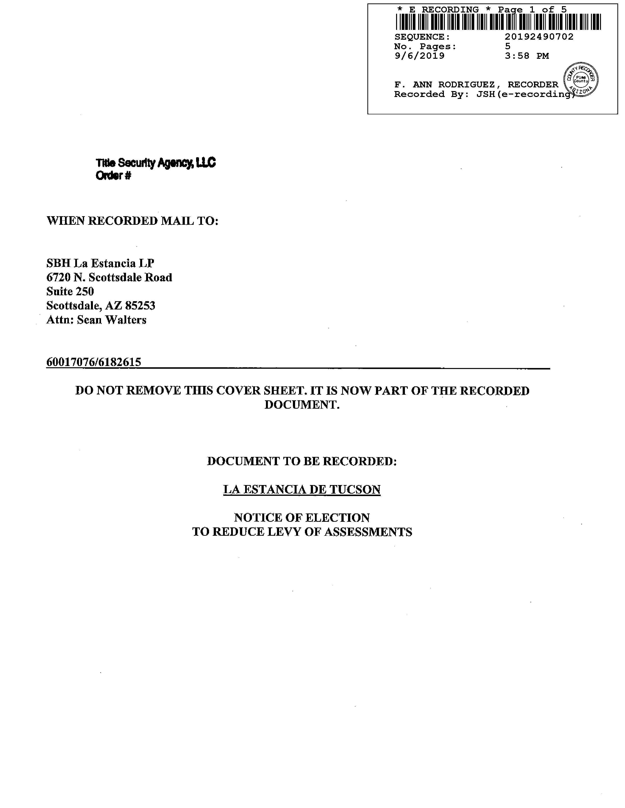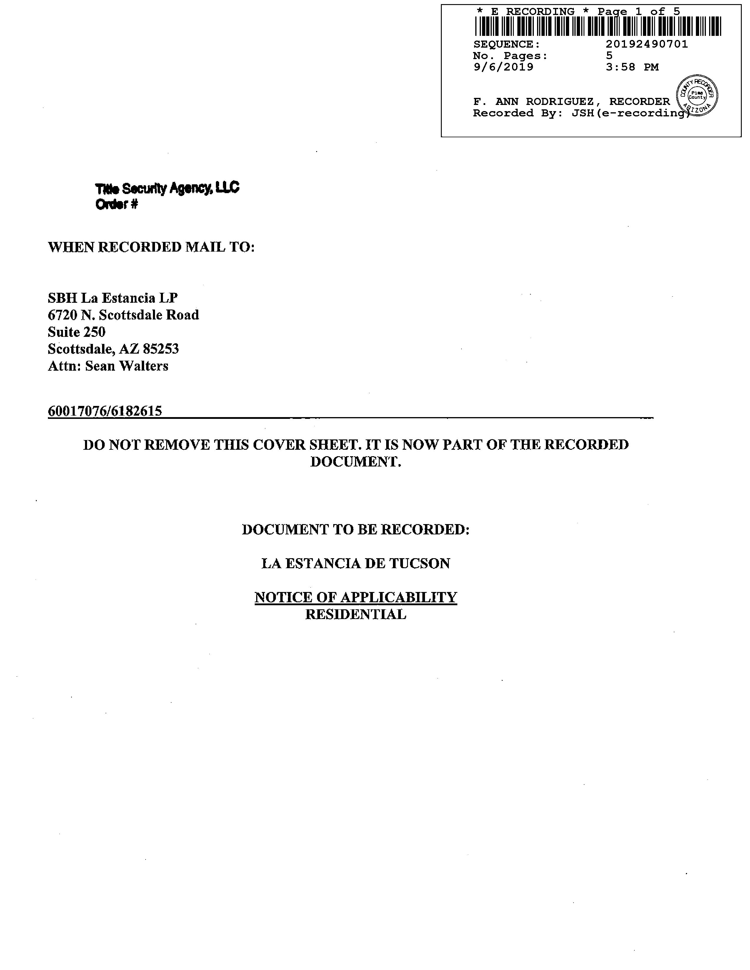 This report is not an insured product or service or a representation of the condition of title to real property. It is not an abst ract, legal opinion, opinion of title, title insurance commitment or preliminary report, or any form of Title Insurance or Guaranty. This report is issued exclusively for the benefit of the Applicant therefor and may not be used or relied upon by any other person. This report may not be reproduced in any manner without First American or Title Security's prior written consent. First American or Title Security does not represent or warrant that the information herein is complete or free from error, and the information herein is provided without any warranties of any kind, as-is, and with all faults. As a material part of the consideration given in exchange for the issuance of this report, recipient agrees that First American or Title Security's sole liability for any loss or damage caused by an error or omission due to inaccurate information or negligence in preparing this report shall be limited to the fee charged for the report. Recipient accepts this report with this limitation and agrees that First American or Title Security would not have issued this report but for the limitation of liability described above. First American or Title Security makes no representation or warranty as to the legality or propriety of recipient's use of the information herein.
