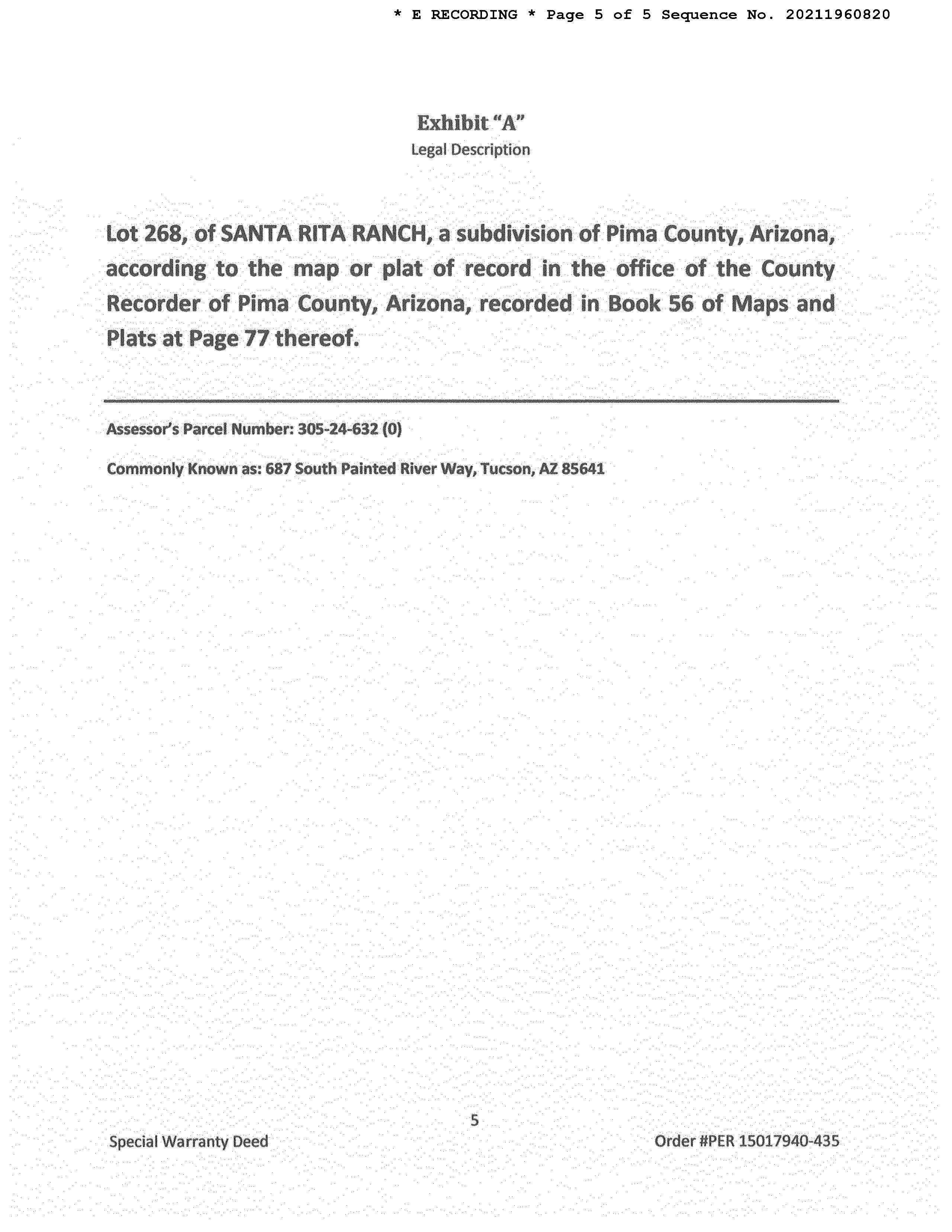 Legal Description : Santa Rita Ranch Lot 268