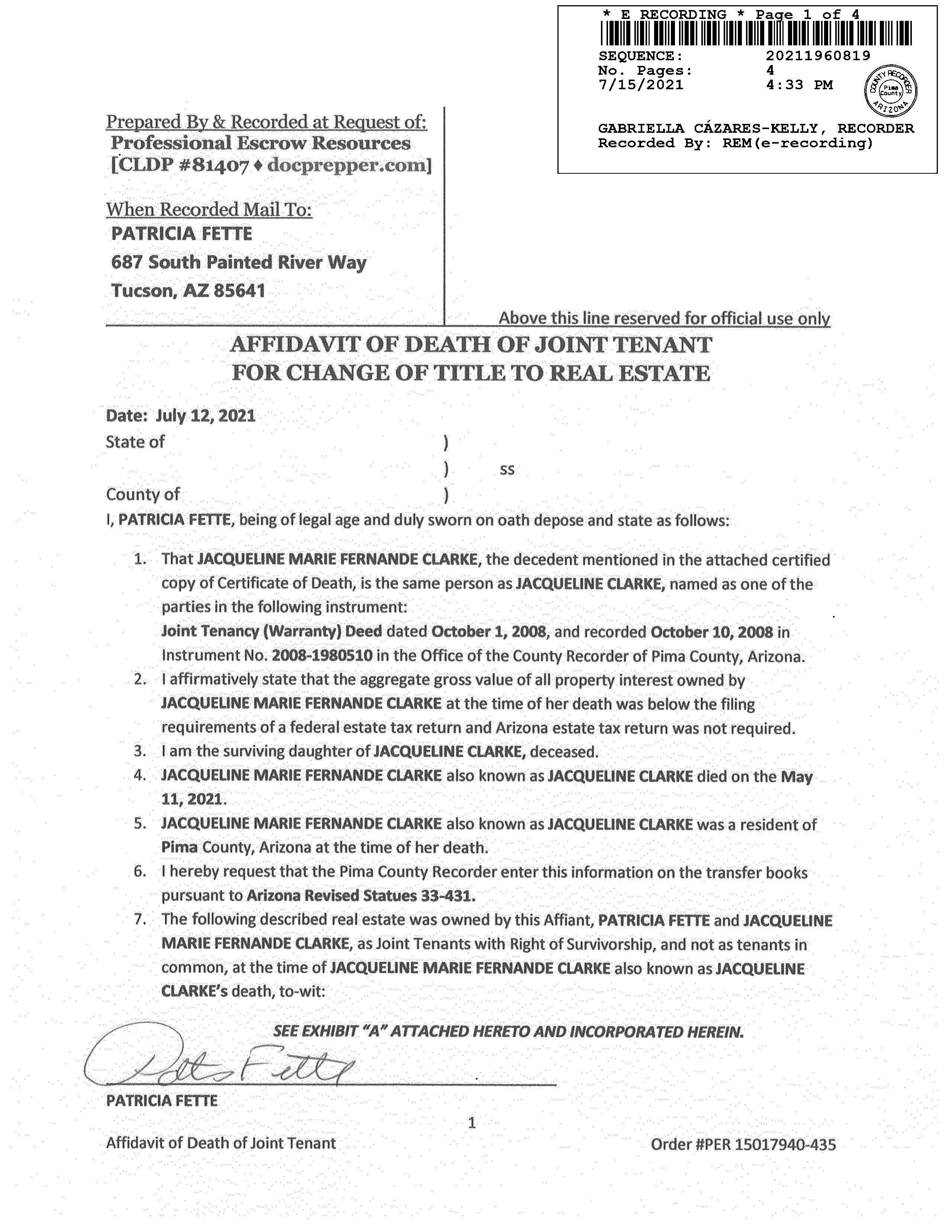 OWNER: CLARKE DONALD S & JACQUELINE & 13392 795 09/16/2008 SITUS: 687 S PAINTED RIVER WY PC