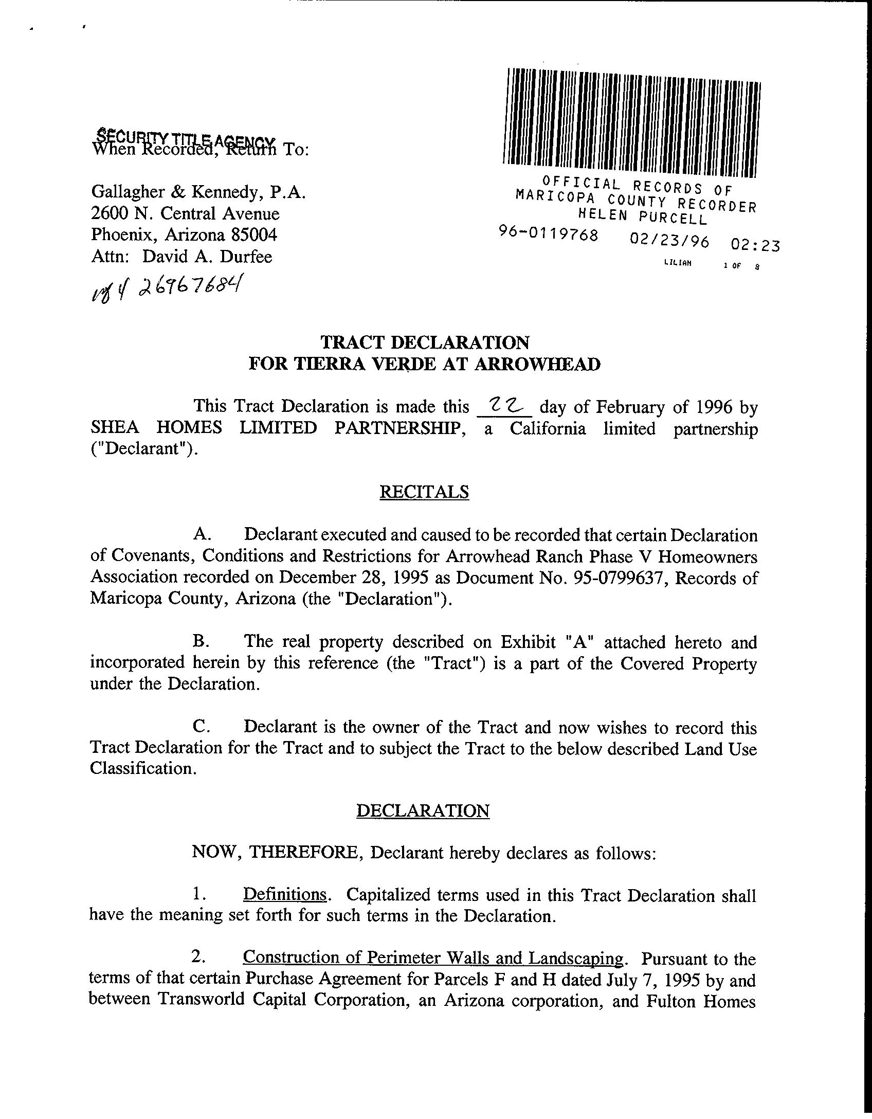 ©2021 First American Financial Corporation and/or its affiliates. All rights reserved. NYSE: FAF 05252610821 COVENANTS, CONDITIONS & RESTRICTIONS PREPARED FOR : First American Title Insurance Company, and the operating divisions thereof, make no express or implied warranty respecting the information presented and assume no responsibility for errors or omissions. First American, the eagle logo, First American Title, and firstam.com are registered trademarks or trademarks of First American Financial Corporation and/or its affiliates. 7041 West Tonopah Drive Glendale, AZ 85308