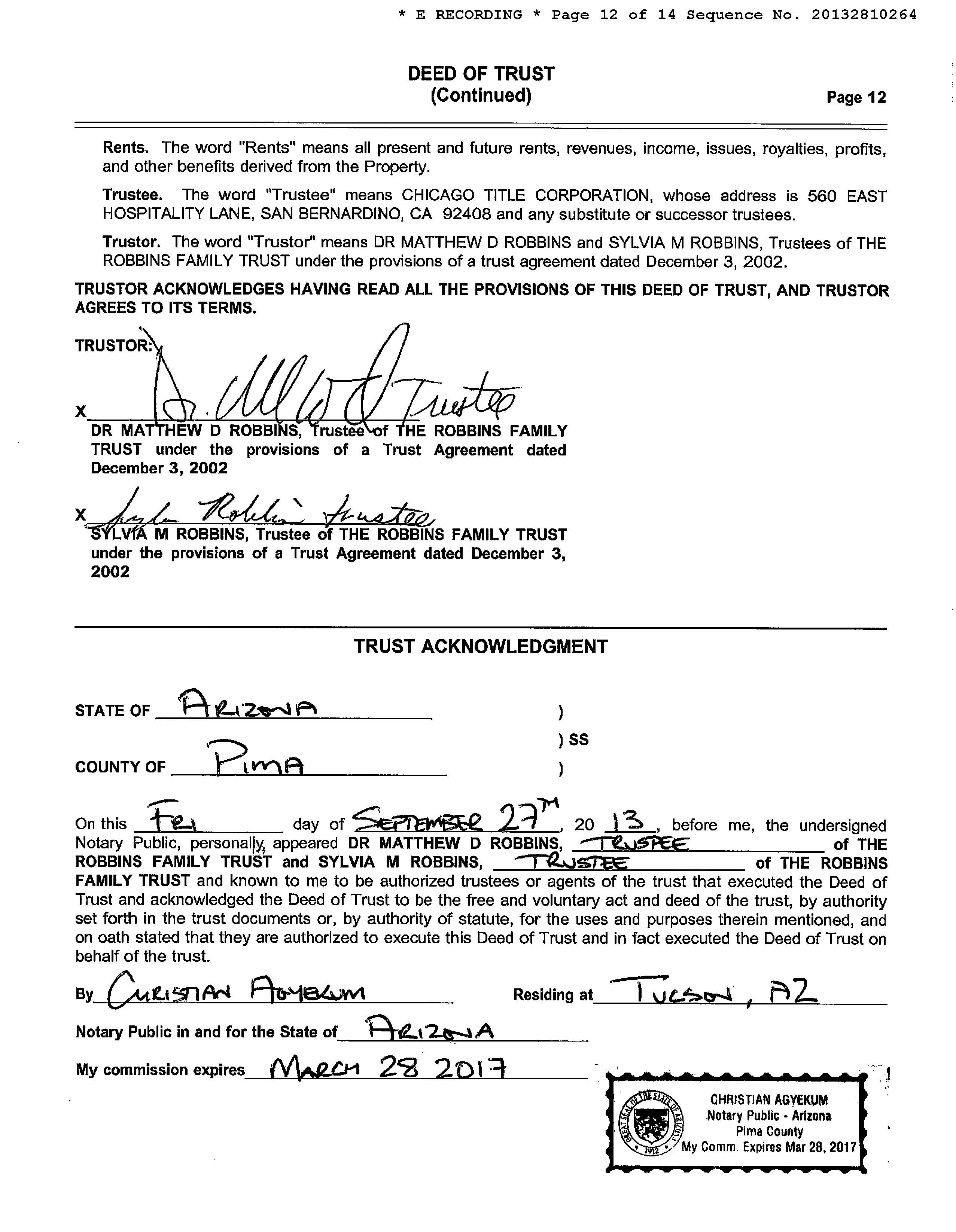 Owner Name : Robbins Matthew D / Robbins Sylvia Mailing Address : 1625 W Ina Rd #117, Tucson AZ 85704-1975 C011