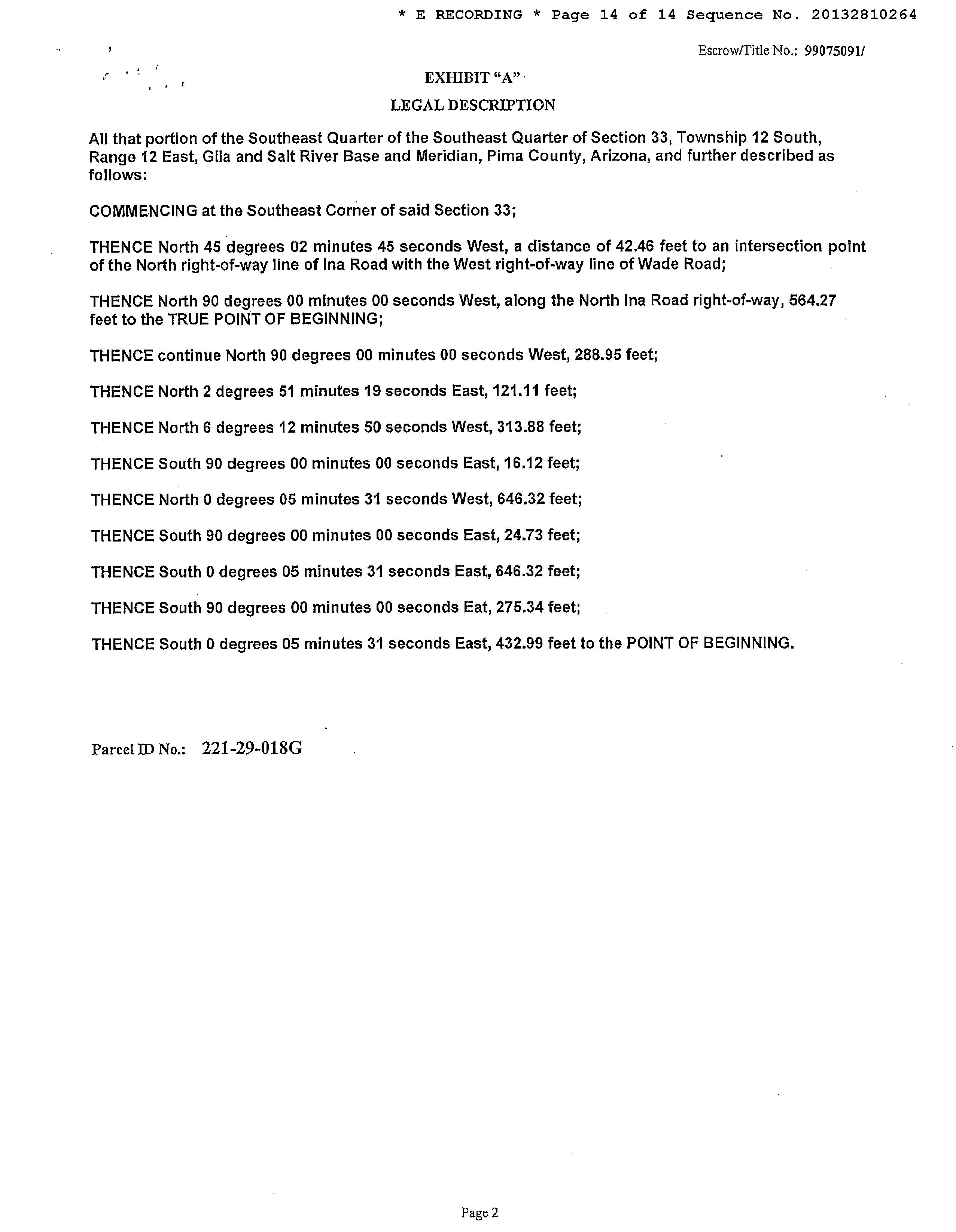 Legal Description : Ctrl Ptn Se4 Se4 Lyg N Of & Adj To Ina Rd 3.31 Ac Sec 33-12-12
