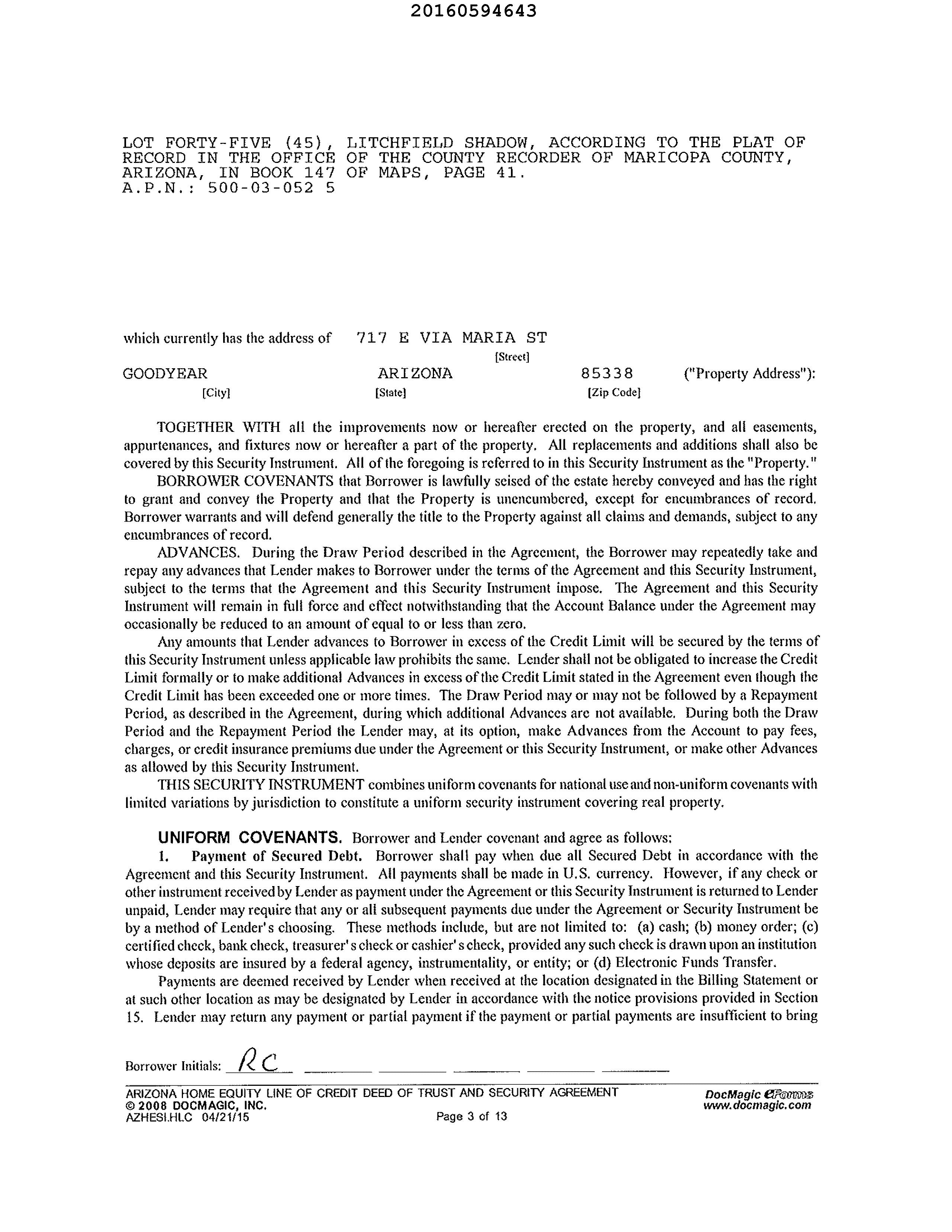 Subject Property : 717 E Via Maria St Goodyear AZ 85338 Owner Information Owner Name : Cruz Ruben L Mailing Address : 523 E Hill Dr, Avondale AZ 85323-2129 C004 Vesting Codes : Husband/wife / / Owner OccupiedIndicator : A Location Information Legal Description : Lot 45 Litchfield Shadows County : Maricopa, Az Subdivision : Litchfield Shadows Census Tract / Block : 610.63 / 1 Map Reference : 14741 Township-Range- Sect : 01N-01W-03 School District : Avondale 44 Legal Lot : 45 Munic/Township : Goodyear APN : 500-03-052 Neighbor Code : 29-009