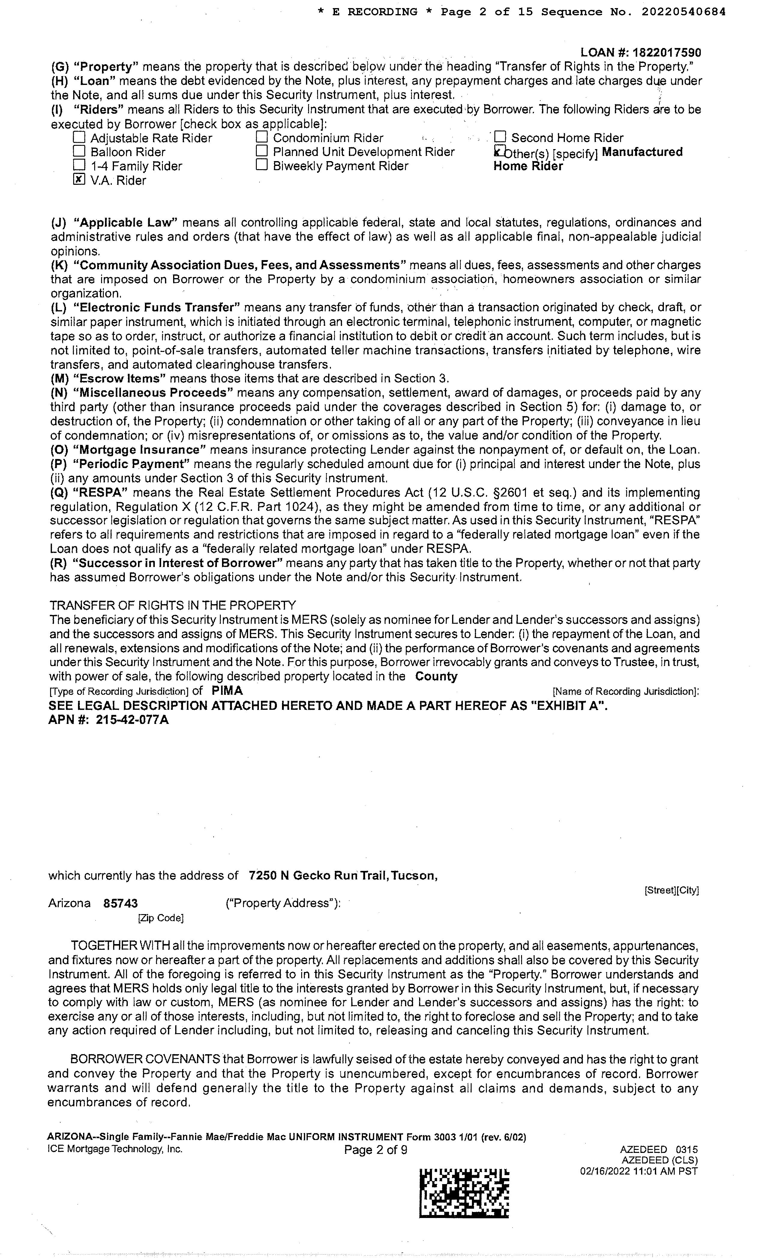 9 7050 N Hot Desert Trl 240,000 54,505 02/28/2022