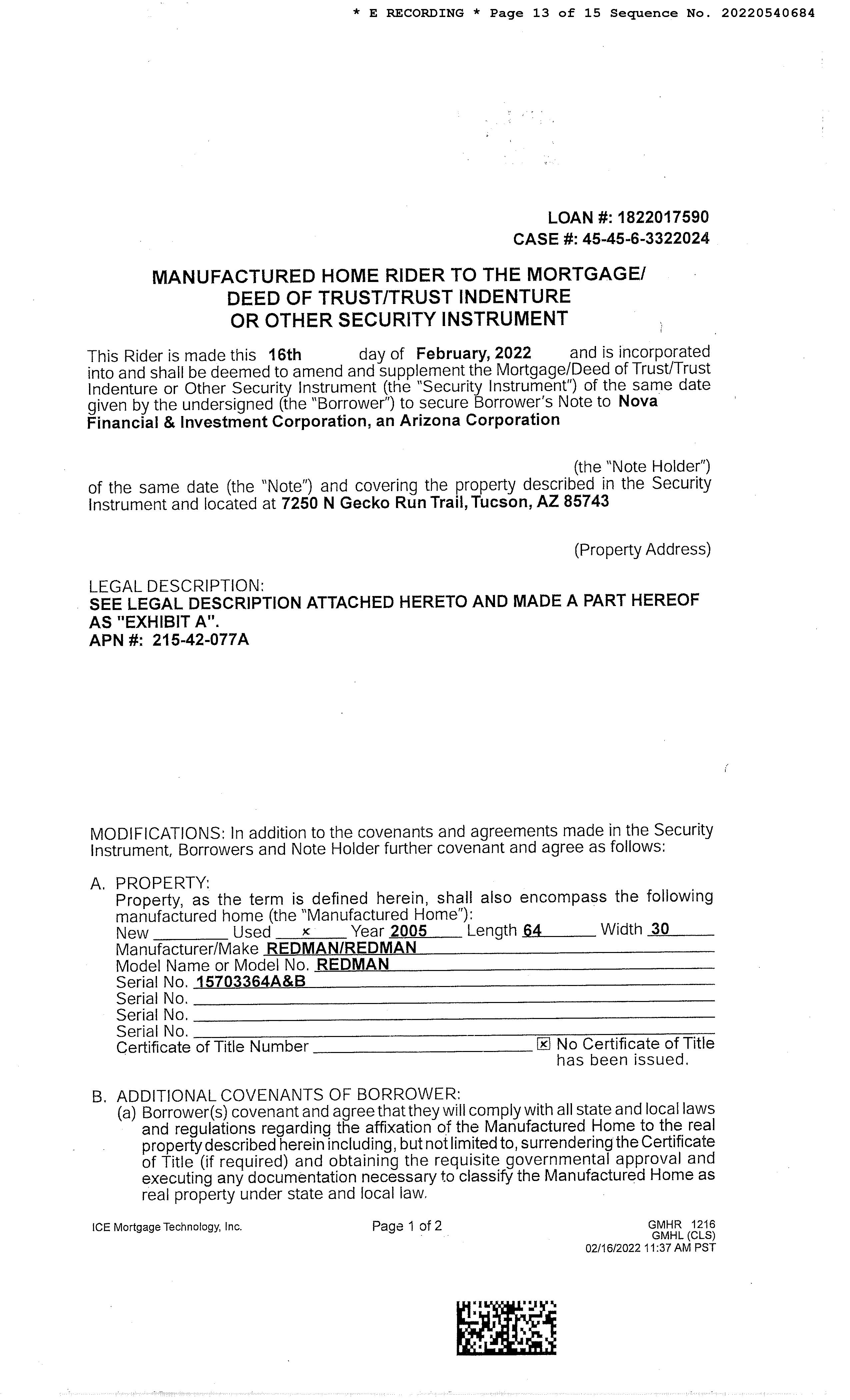 19 7735 N Cherokee Pony Trl 120,000 45,595 01/18/2022