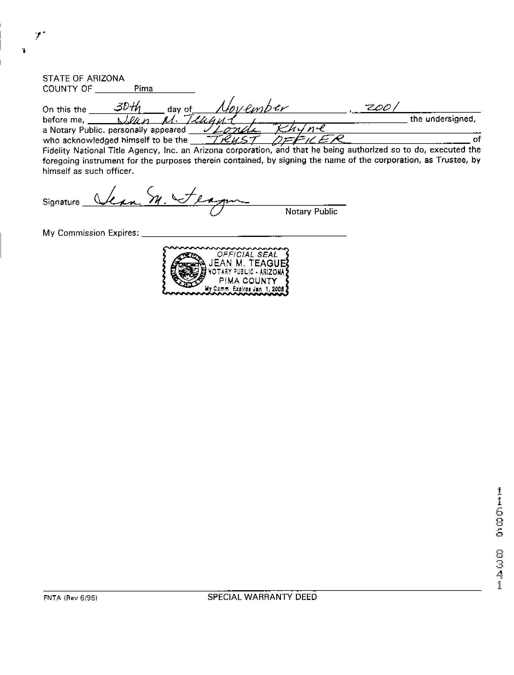 Recording/Sale Date : 11/30/2001 / 11/15/2001 1st Mtg Int. Rate/Type : / Fixed Rate Loan Sale Price : $134,701 1st Mtg Document # : 11686-8343