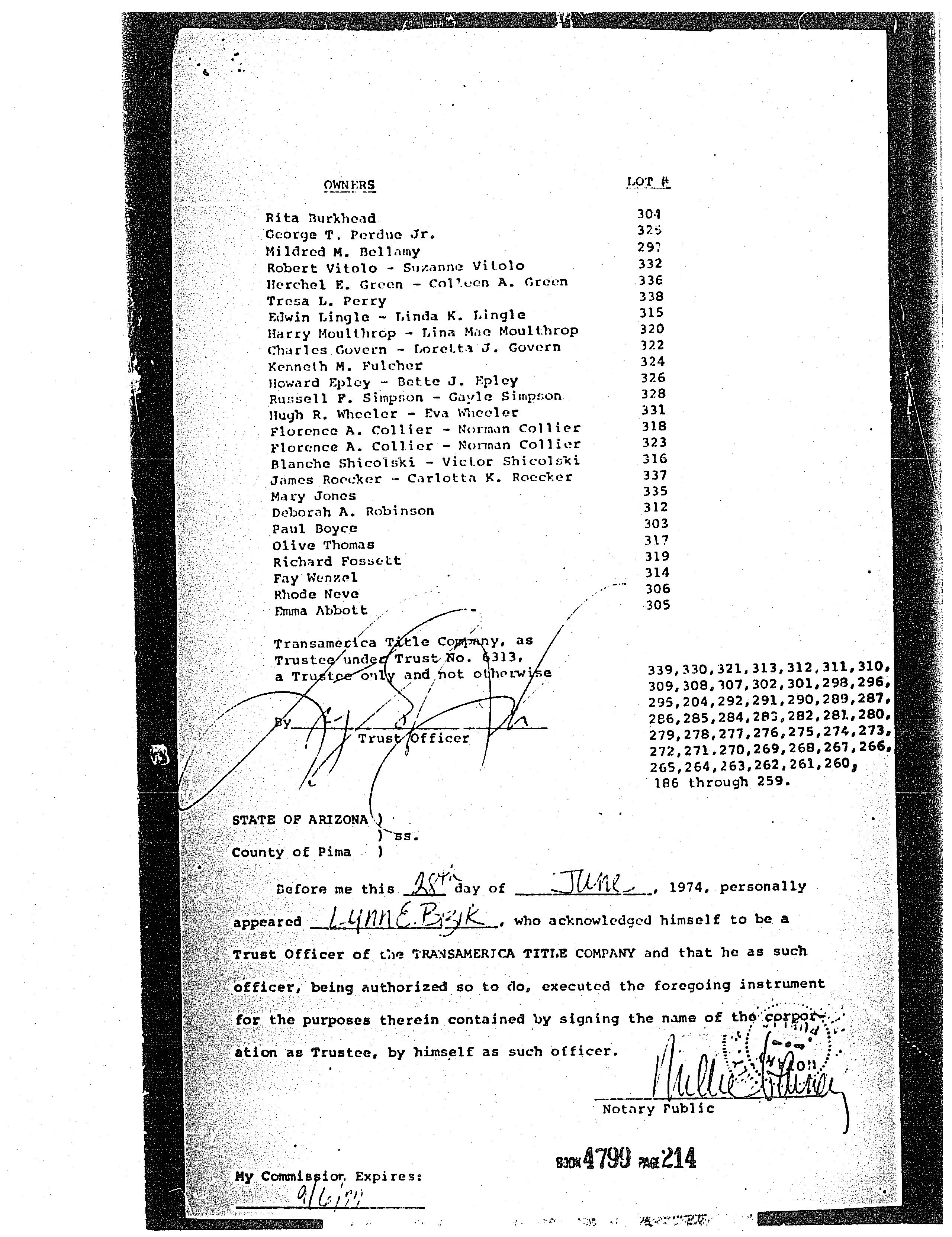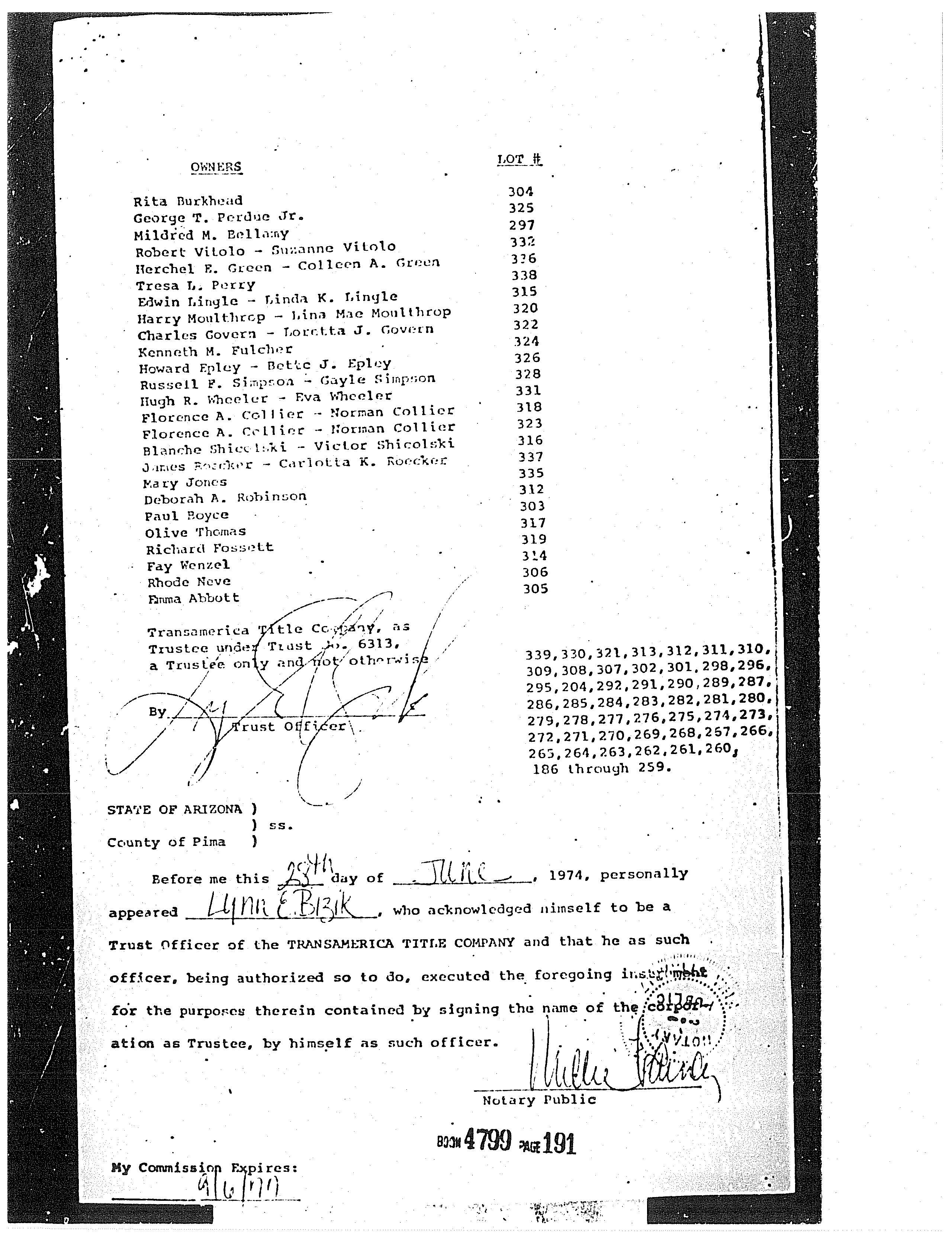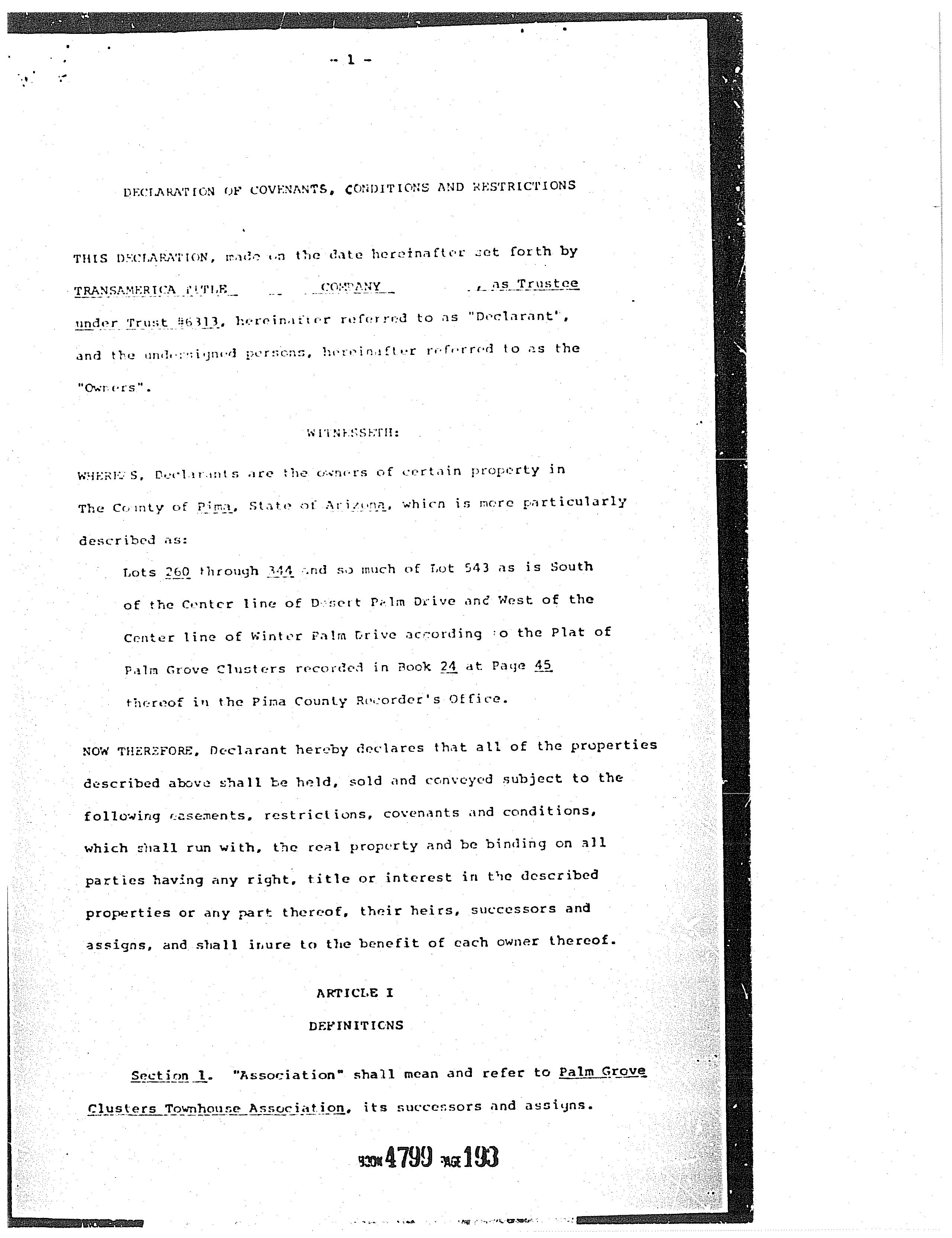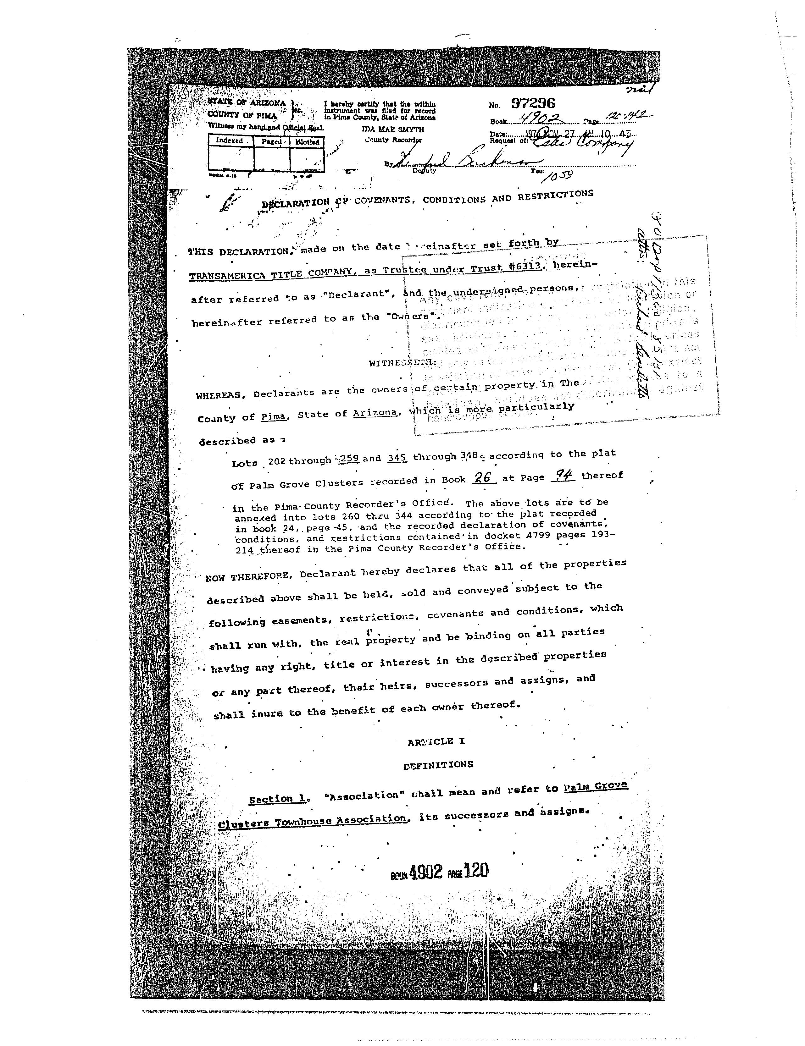 Legal Description : Palm Grove Clusters Resub Townhouses Lot 244 County : Pima, Az APN : 136-37-3970