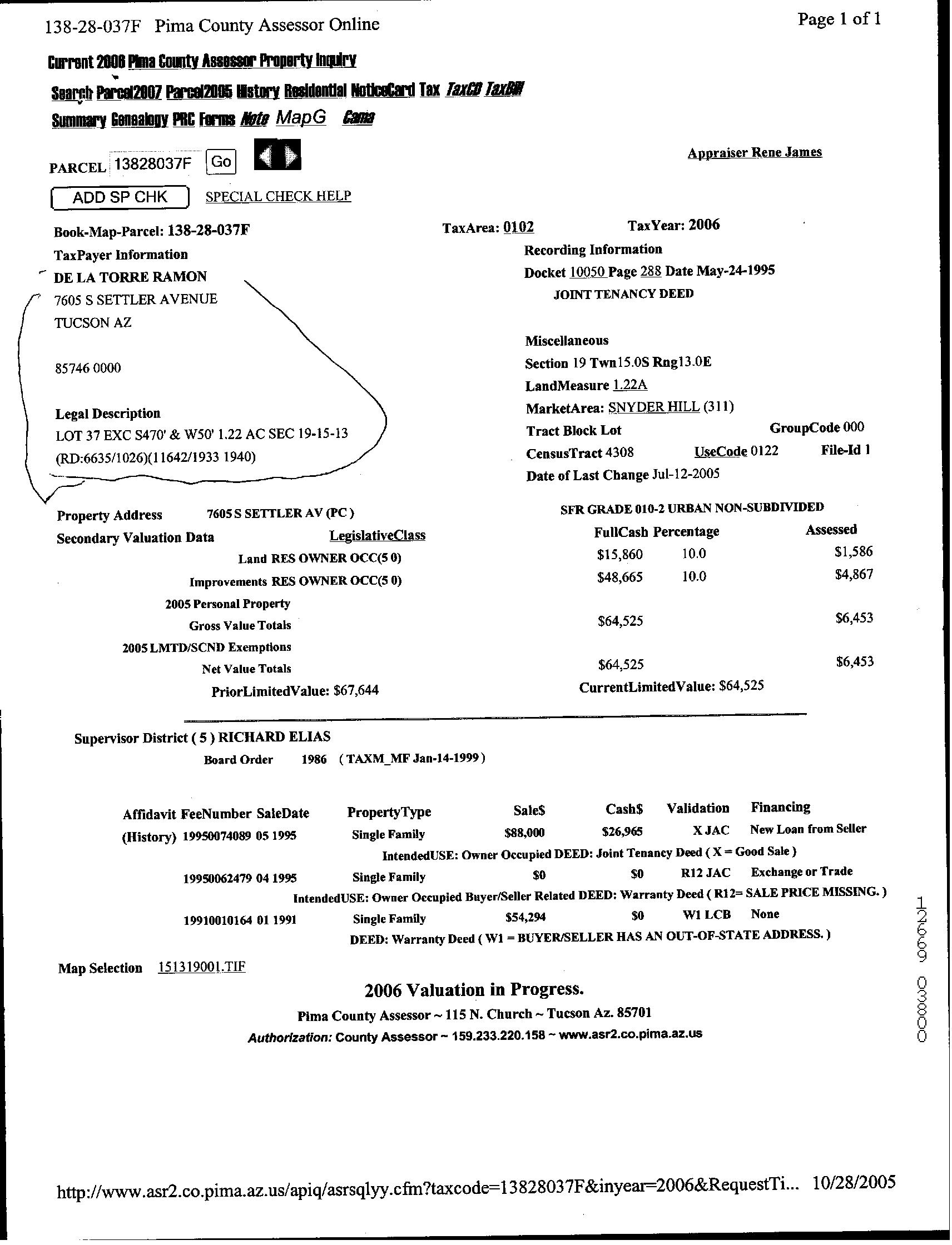 Recording/Sale Date : 10/28/2005 / 10/28/2005