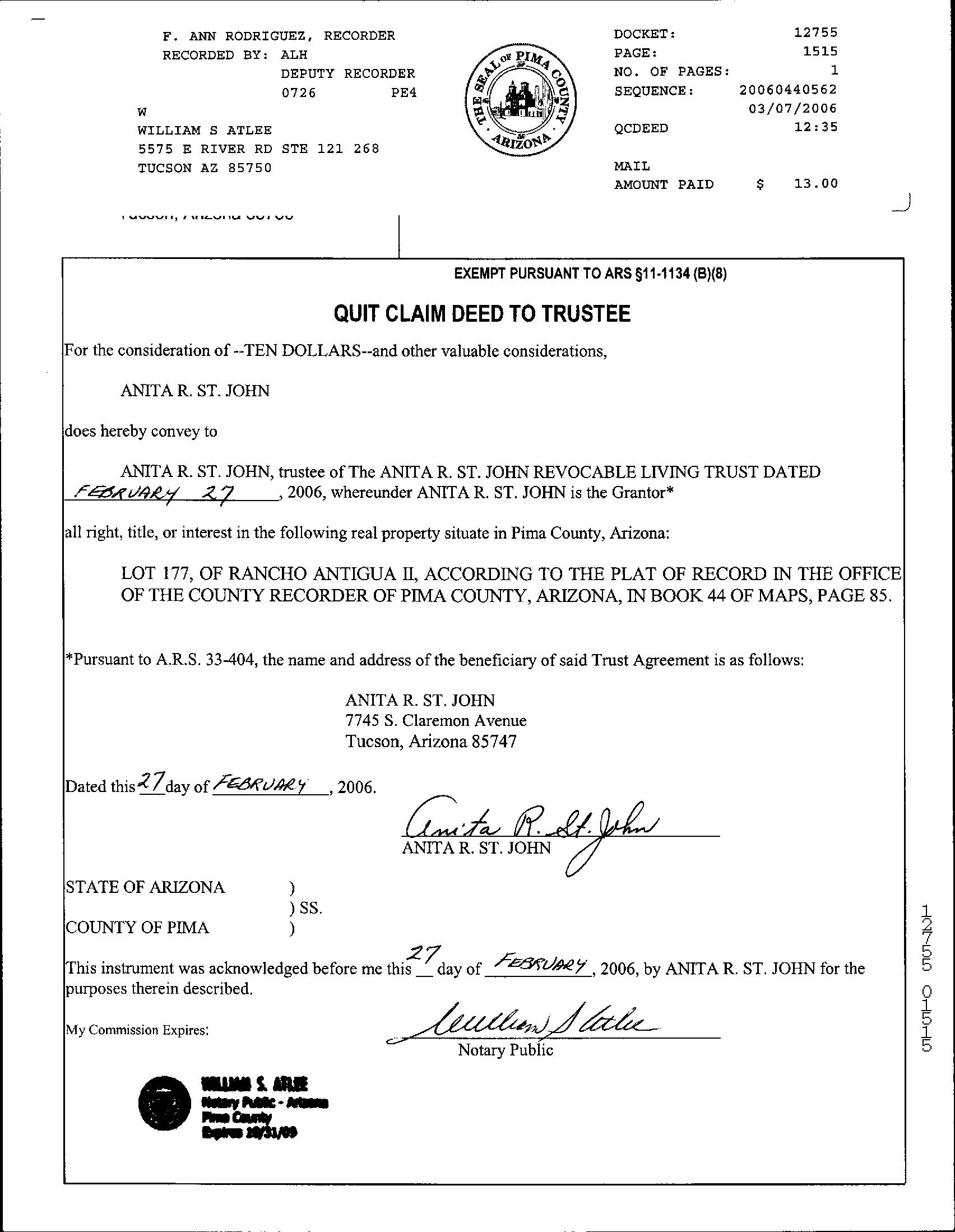 Deed Type : Quit Claim Deed Document # : 12755-1515