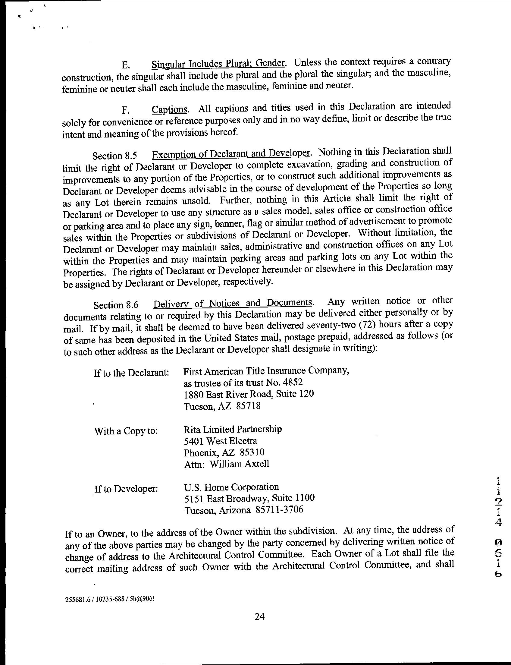 Mailing Address : 2001 W Rudasill Rd #8310, Tucson AZ 85704-7850 C007