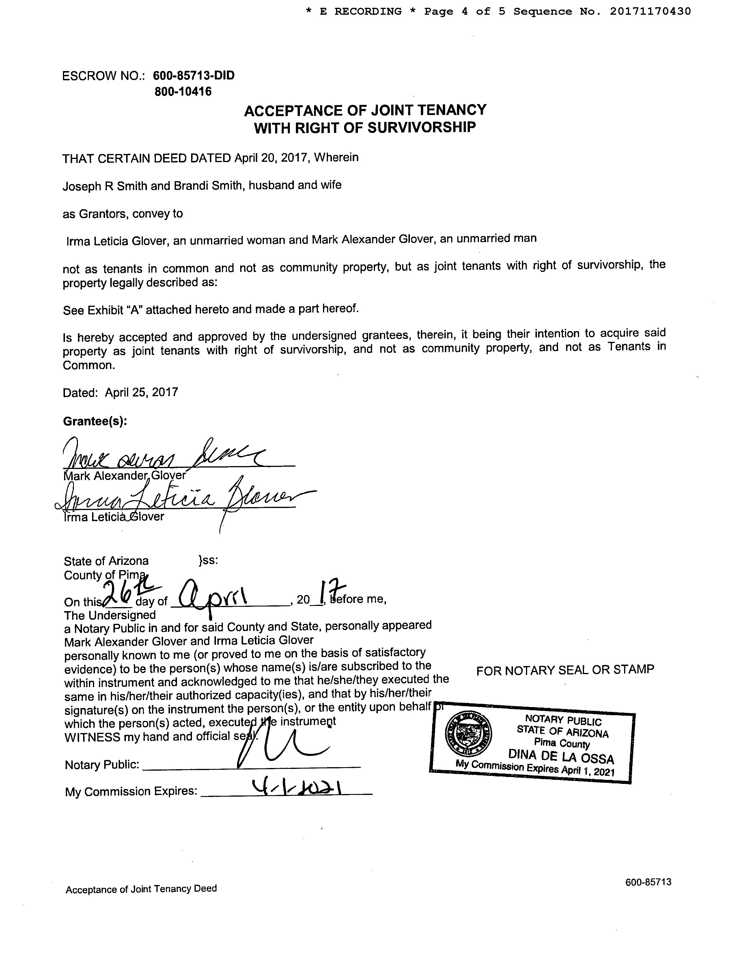 Owner Name: Glover Irma Leticia /Glover Mark Alexander