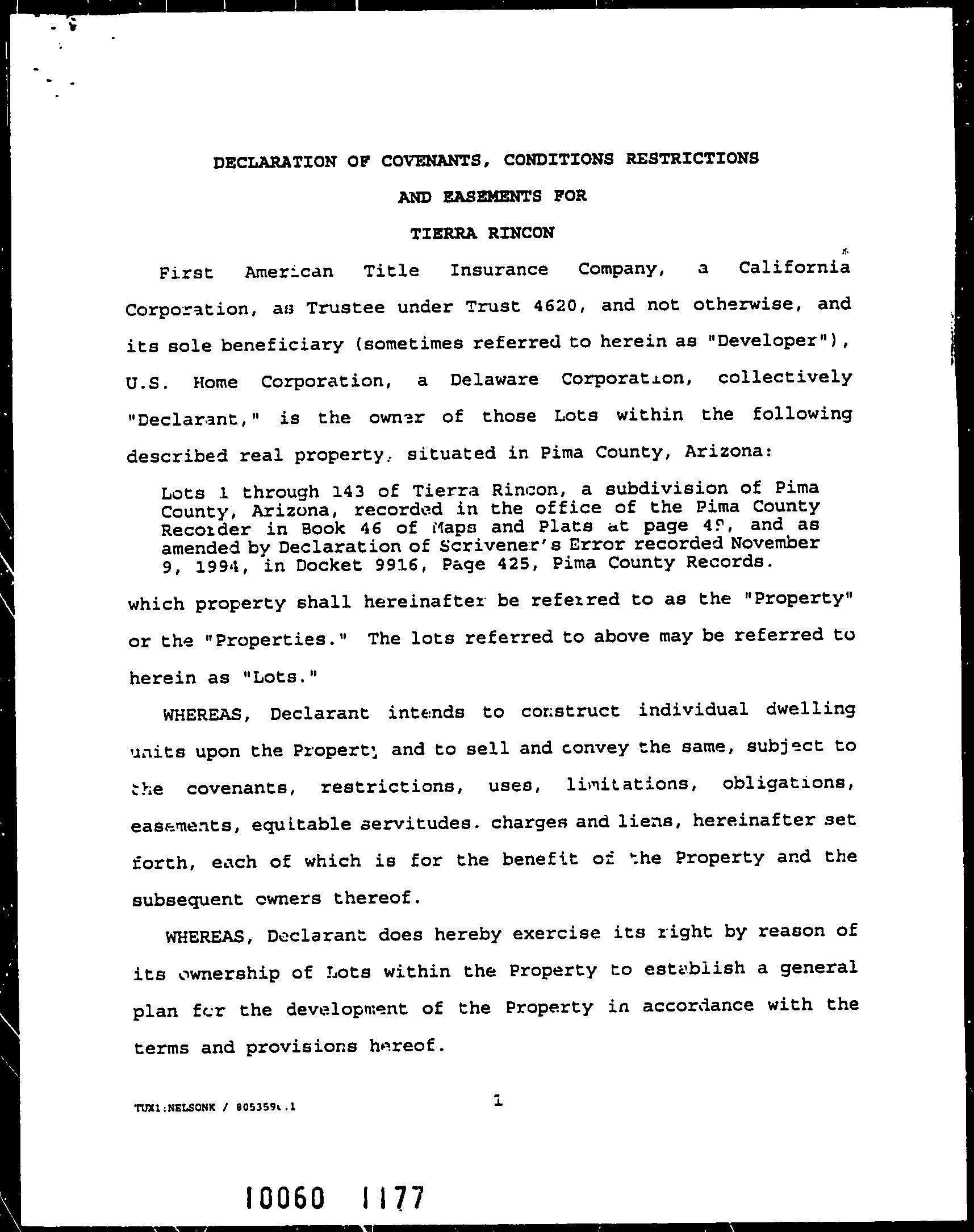 Subdivision : Tierra Rincon