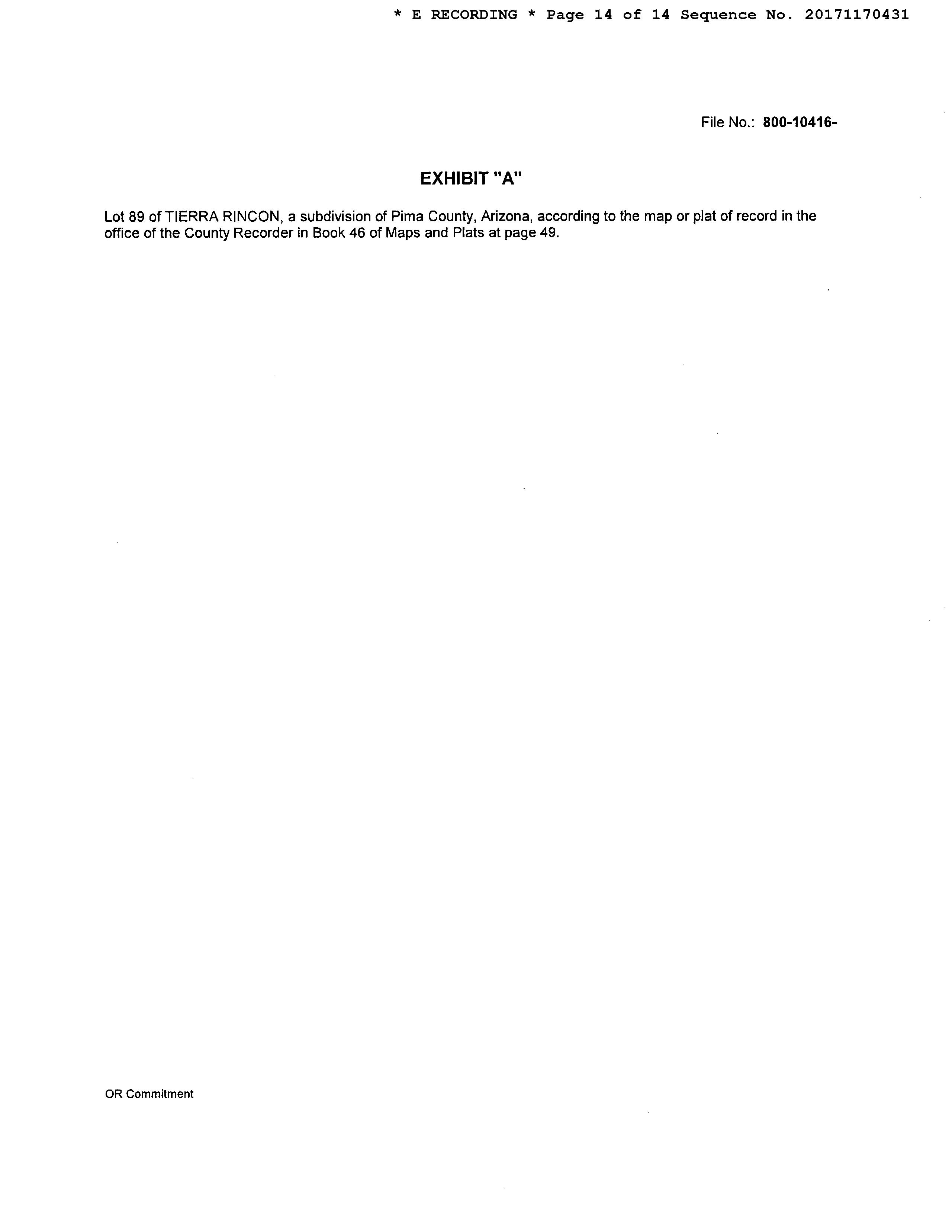 Legal Description : Tierra Rincon Lot 0089