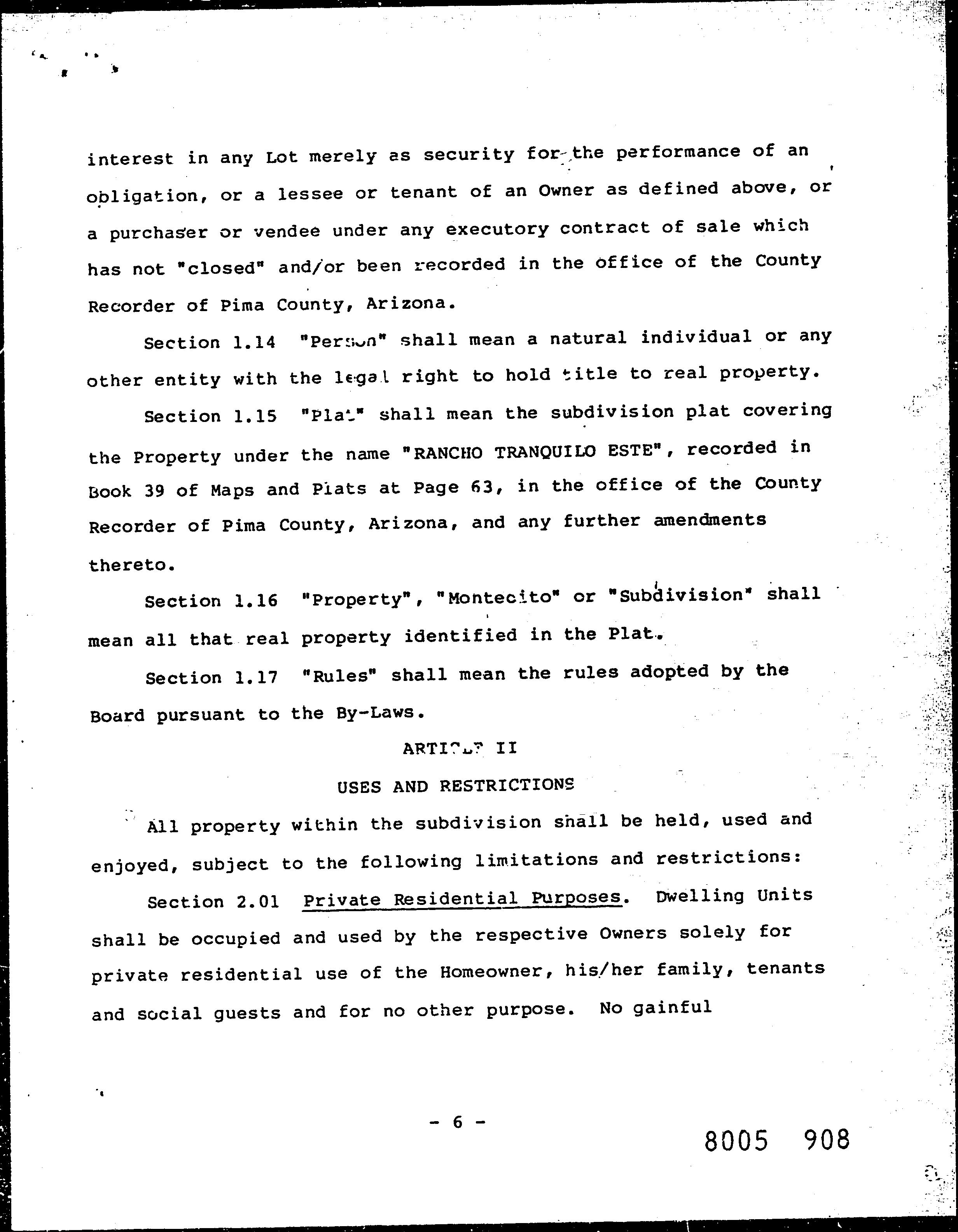 Vesting Codes : / / Joint Tenants OccupiedIndicator : O Location Information Legal Description : Rancho Tranquilo Este Lot 57 County : Pima, Az APN : 133-09-2050 Census Tract / Block : 40.32 / 2 Subdivision : Tranquillo Estates Rho