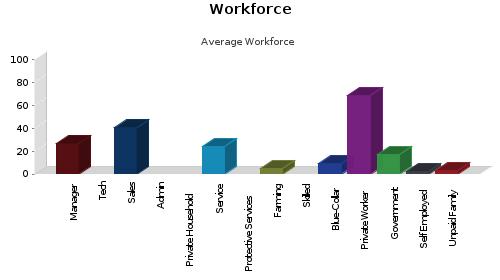 Manager/Prof: 26.42% Private Worker: 69.17% Technical: Government Worker: 16.79% Sales: 40.36% Self Employed Worker: 2.38%