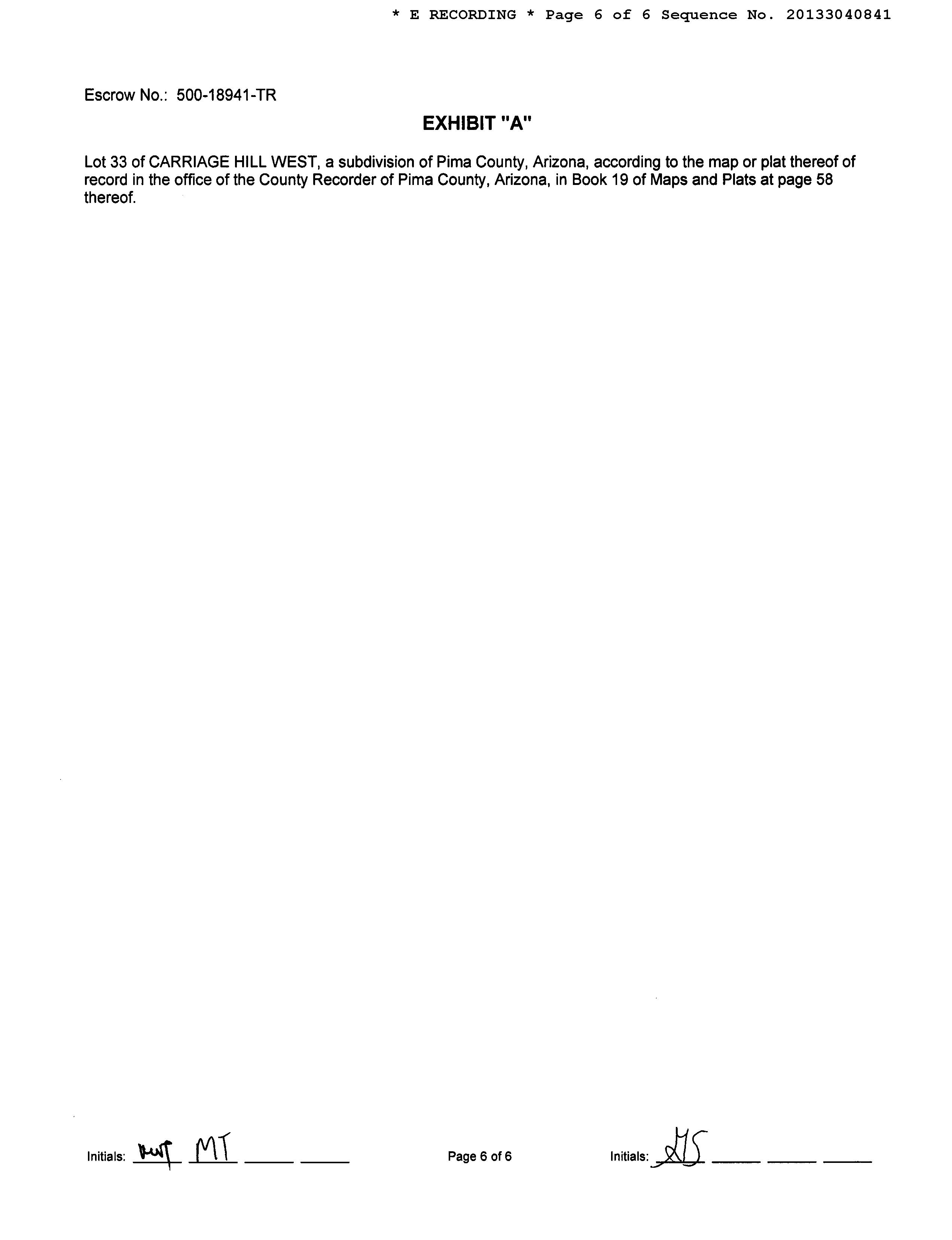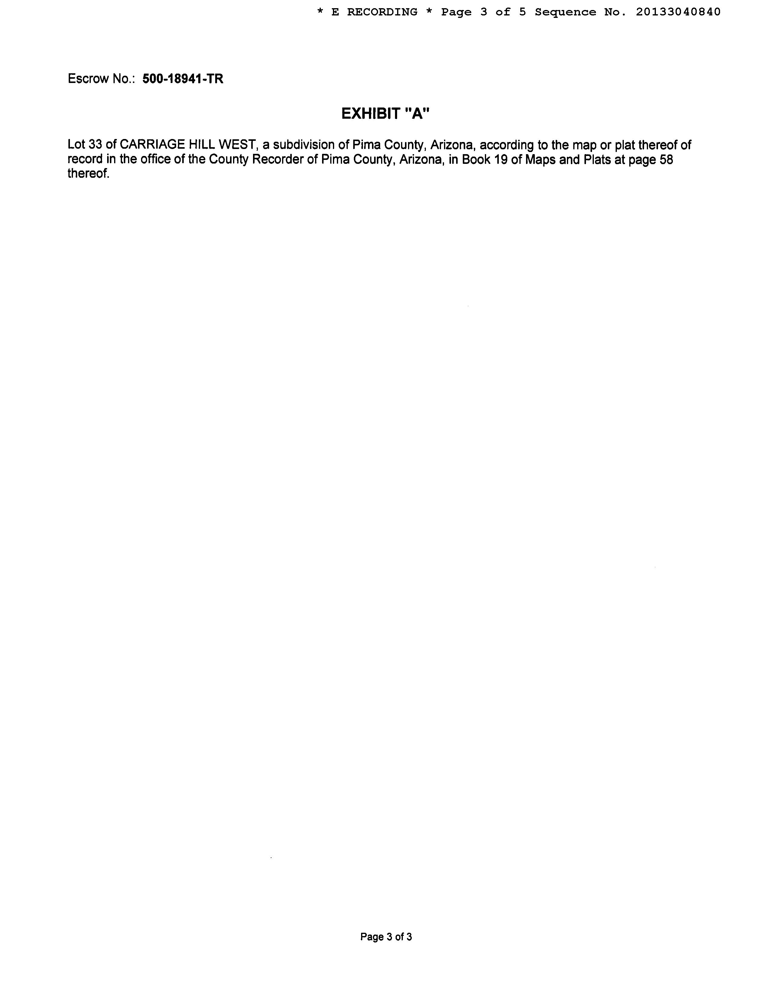 Legal Description : Carriage Hill West Lot 33 County : Pima, Az