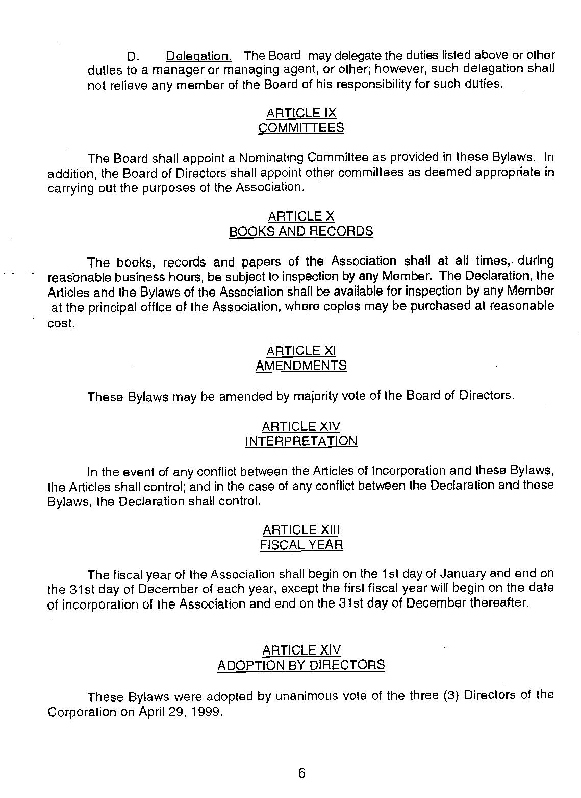 The undersigned, constituting approval of all members of the Board of Directors of the ArizonaSunset at Rita Ranch Association, an Arizona nonprofit corporation, hereby take the following actions in writing pursuant to Section 10-3821, Arizona Revised Statutes, this action taken by theBoard at a duly called meeting of the Board: Pursuant to the Bylaws Article XI, Amendments; the Association hereby certifies that the amendment process as required by the Bylaws was completed per the requirements of the Bylaws.